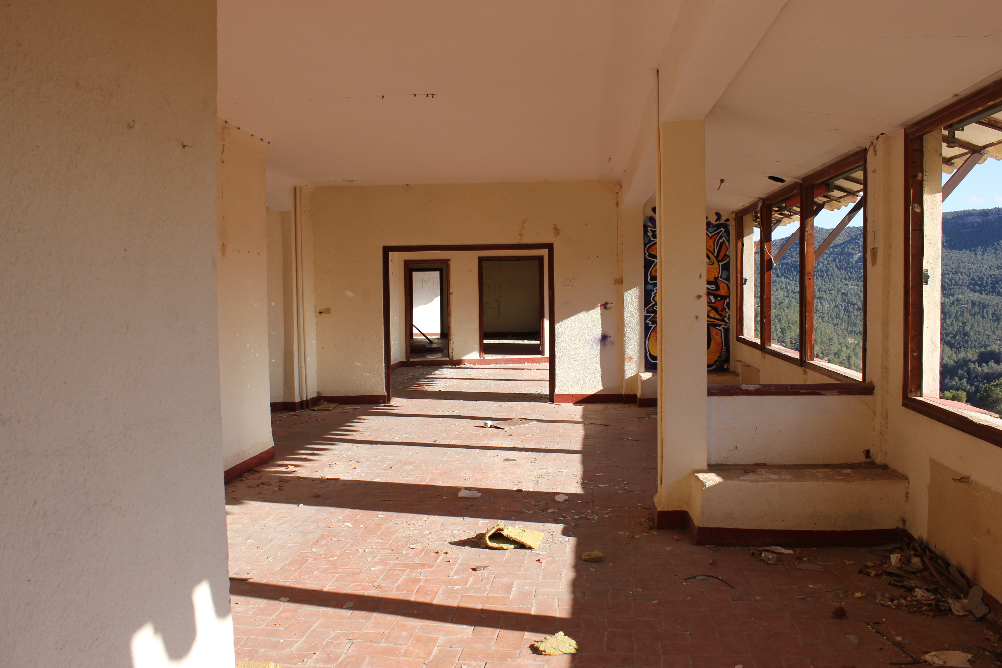 Llegamos al hotel un sábado por la mañana, y resultaba impresionante, al menos por fuera, pensé, pero imaginé que por dentro ya estaría todo arrasado. Cuando entras en un lugar de este tipo, el corazón te late más deprisa, no dejas de pensar que en cualquier momento te llegará la guardia civil, la policía municipal o el guarda de seguridad increpándote porque has entrado en una propiedad privada.