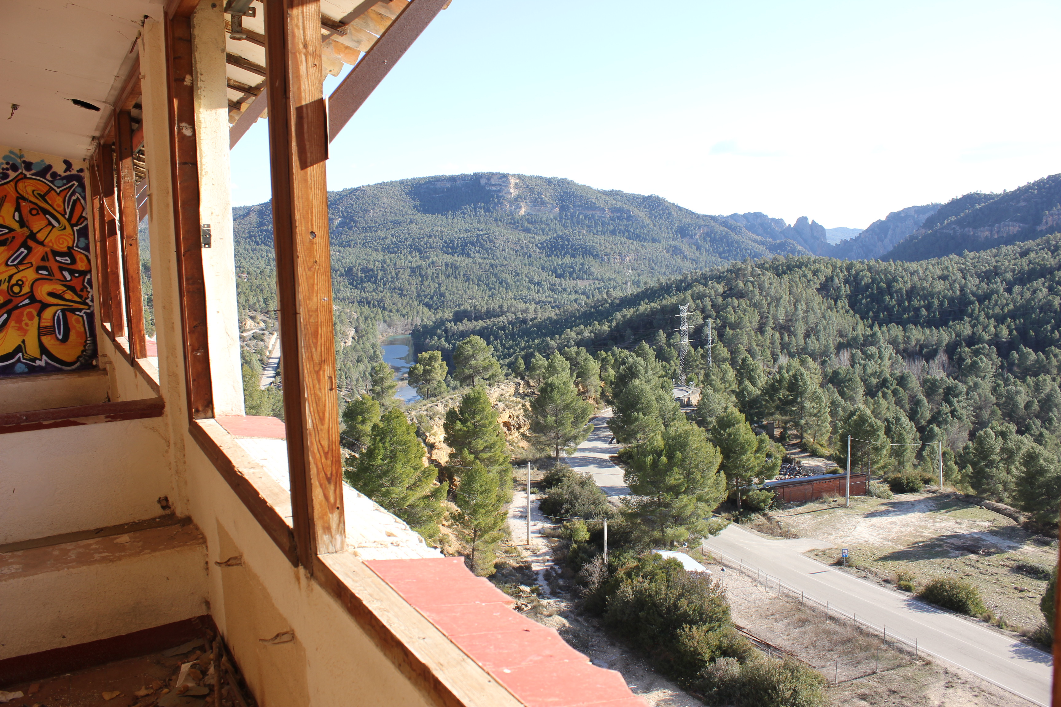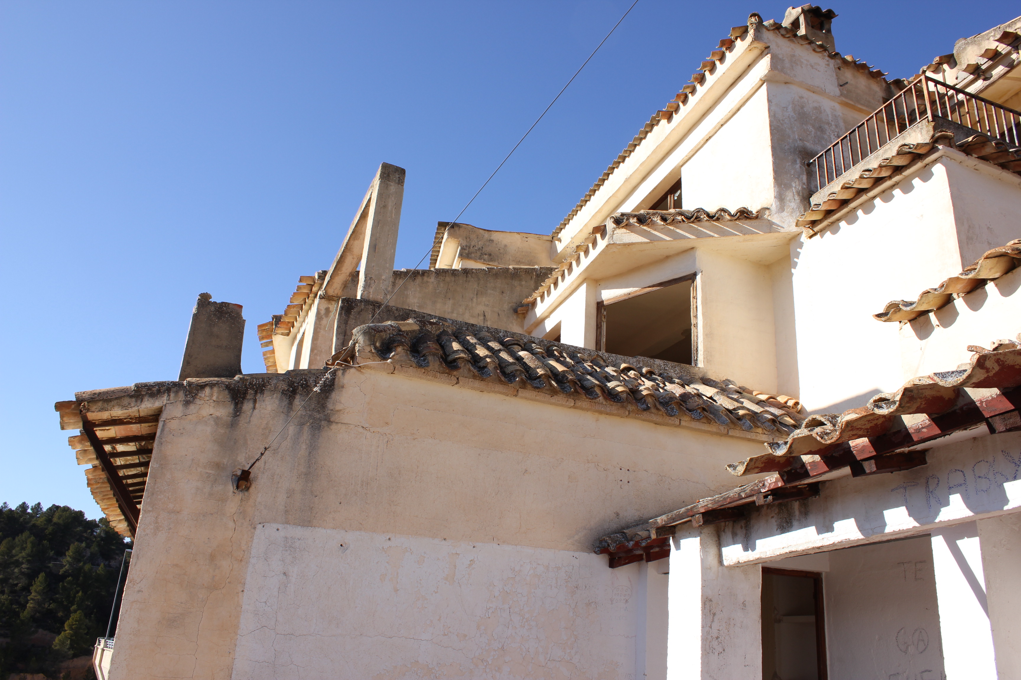 Ya fuera del hotel comentamos cuanto nos sorprendía que el teléfono siguiera funcionado después de tantos años abandonado y volvimos a oir el teléfono. Estaba fuera, sonaba desde fuera del Hotel, rodeamos el hotel, hasta que vimos que el teléfono que sonaba provenía de una de las dos cabinas telefónicas que estaban en la entrada del hotel, nos acercamos a las cabinas, los teléfonos estaban destrozados a pedradas… daba la sensación… no tenían ni línea telefónica, ni cables de ningún tipo.