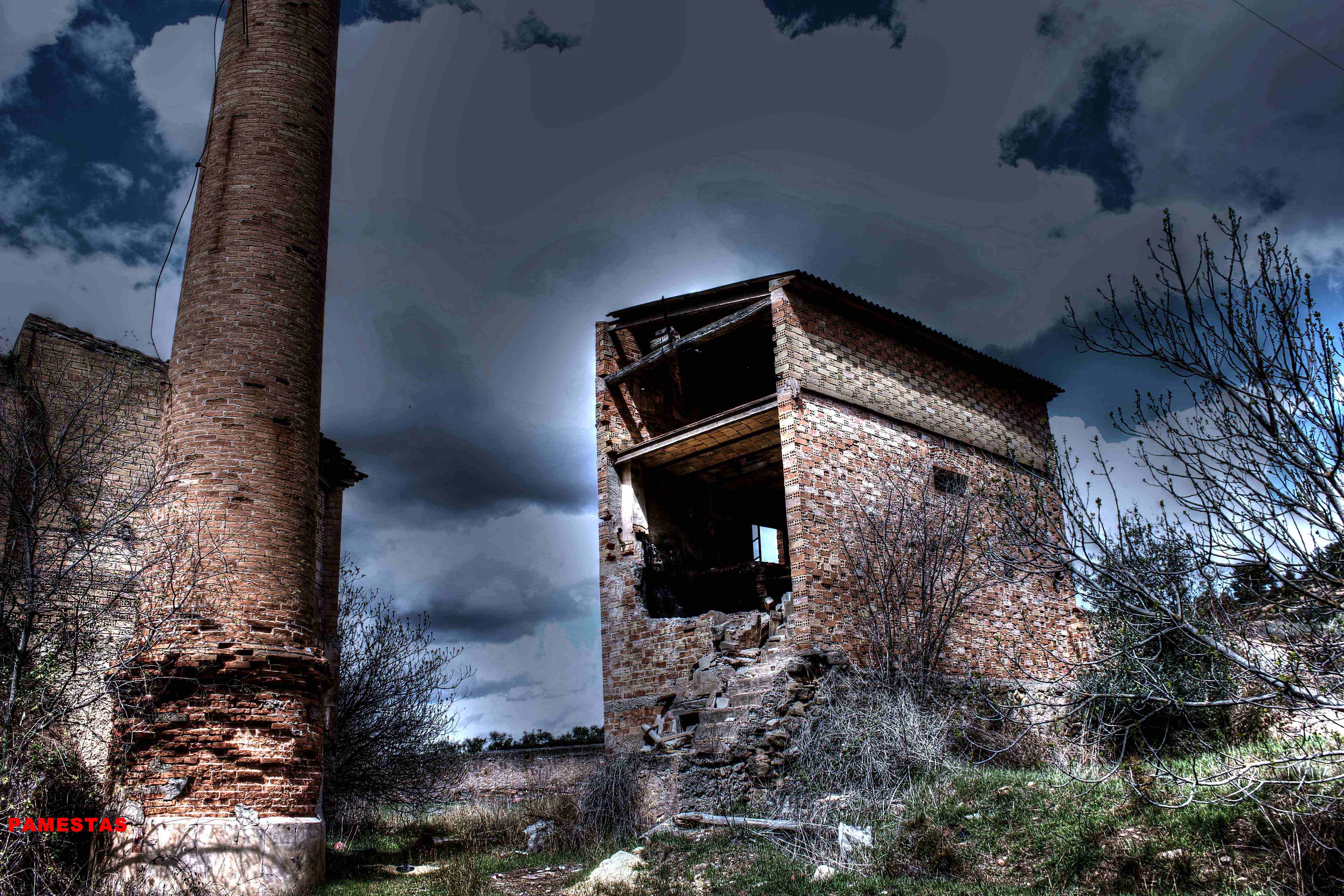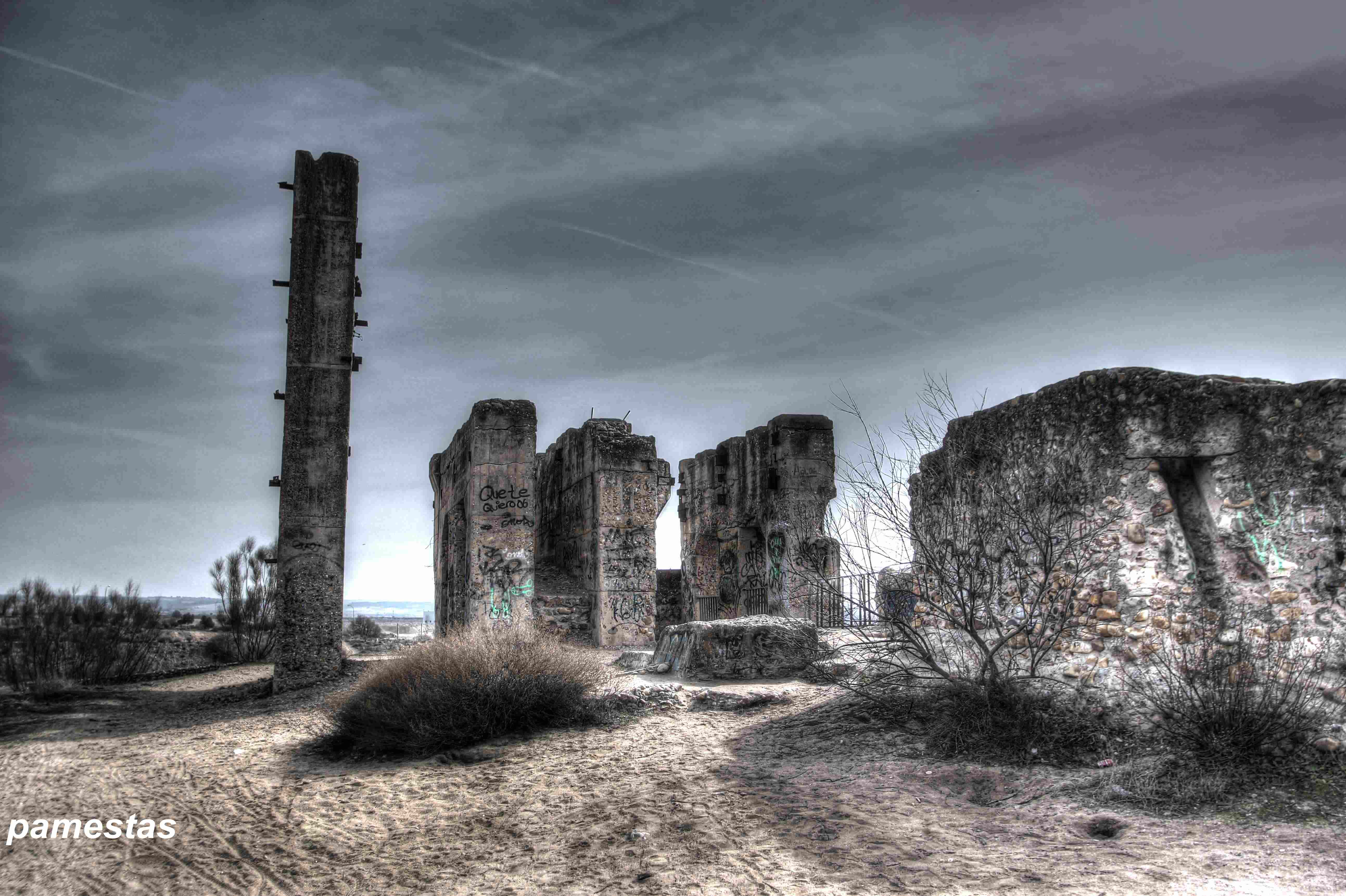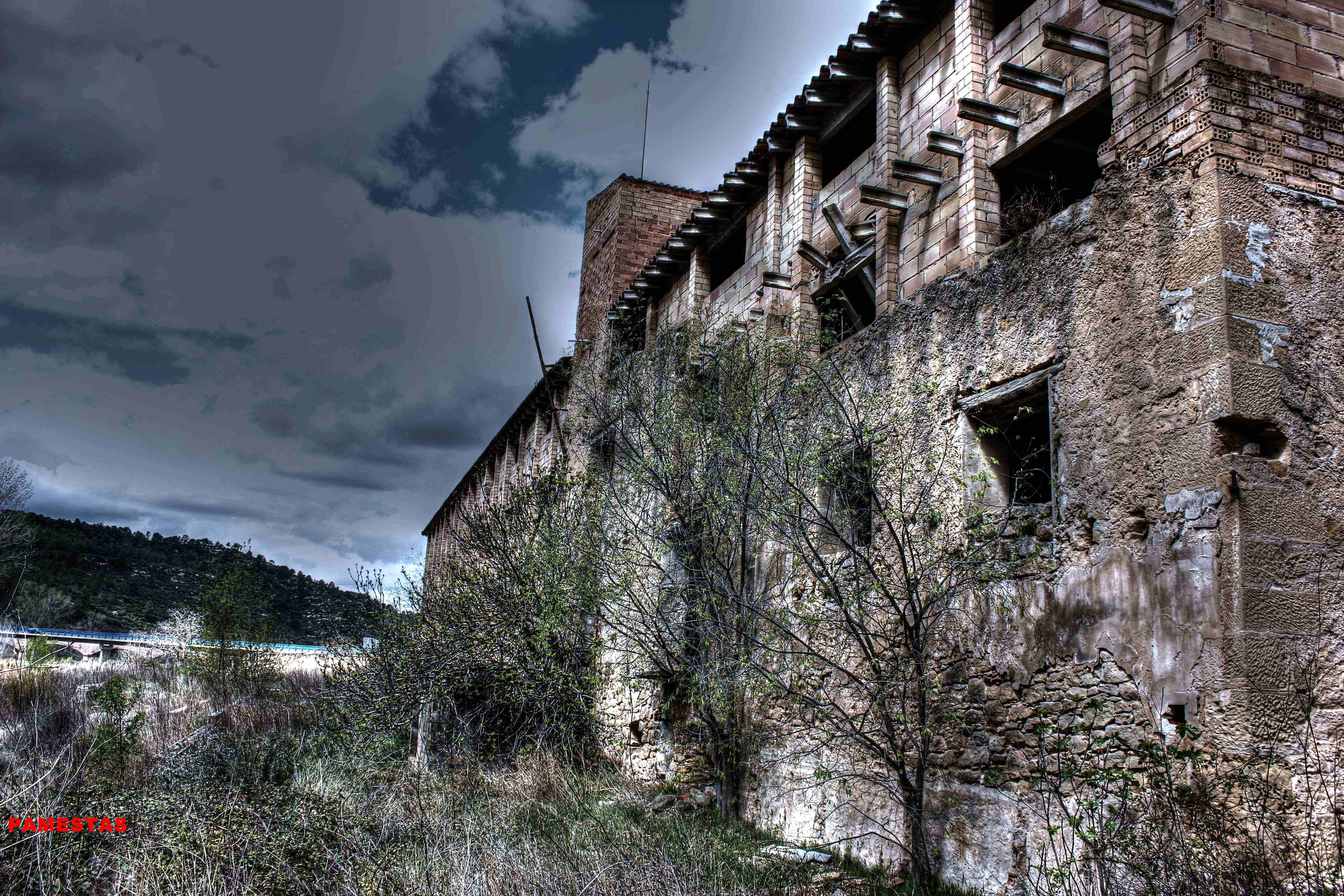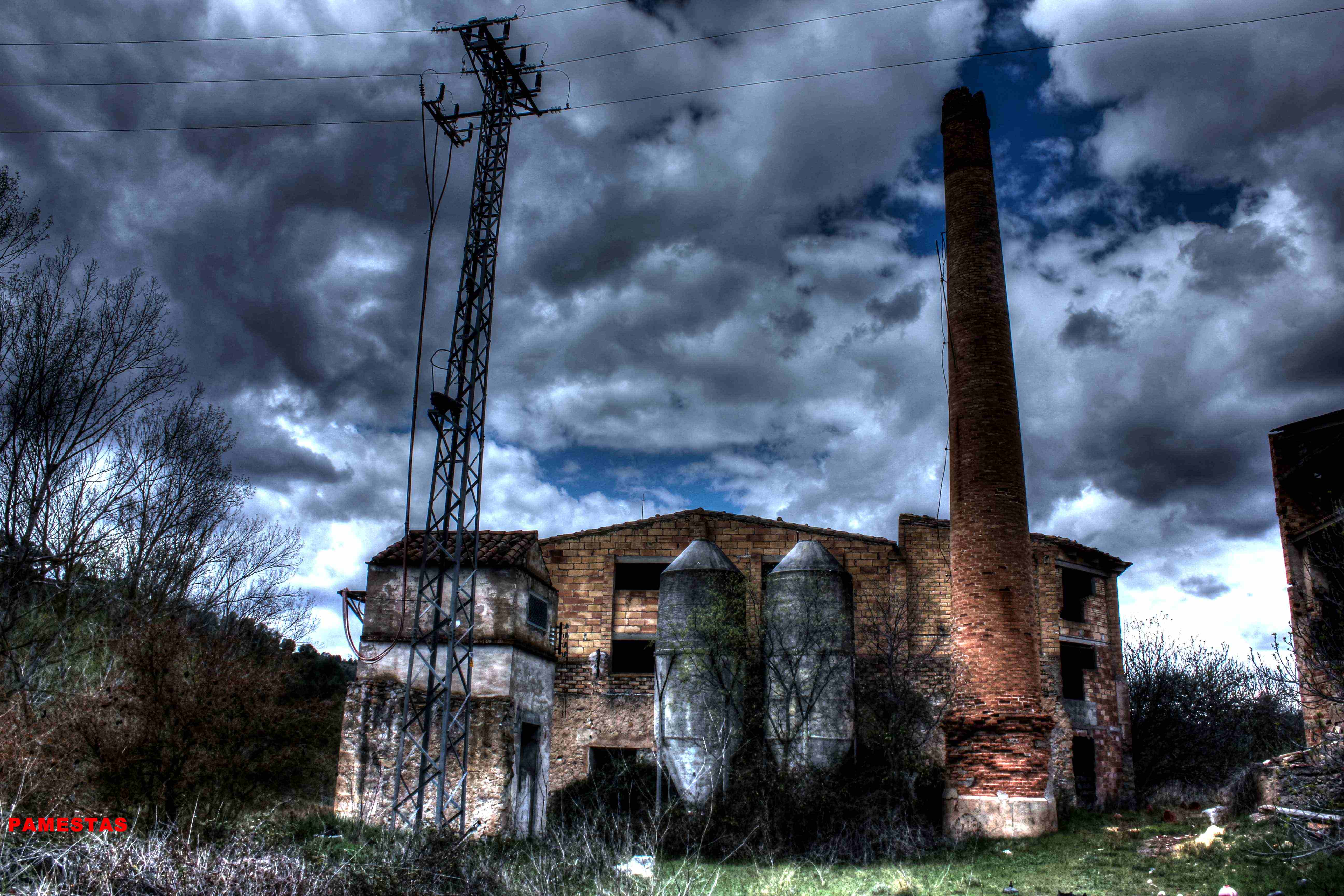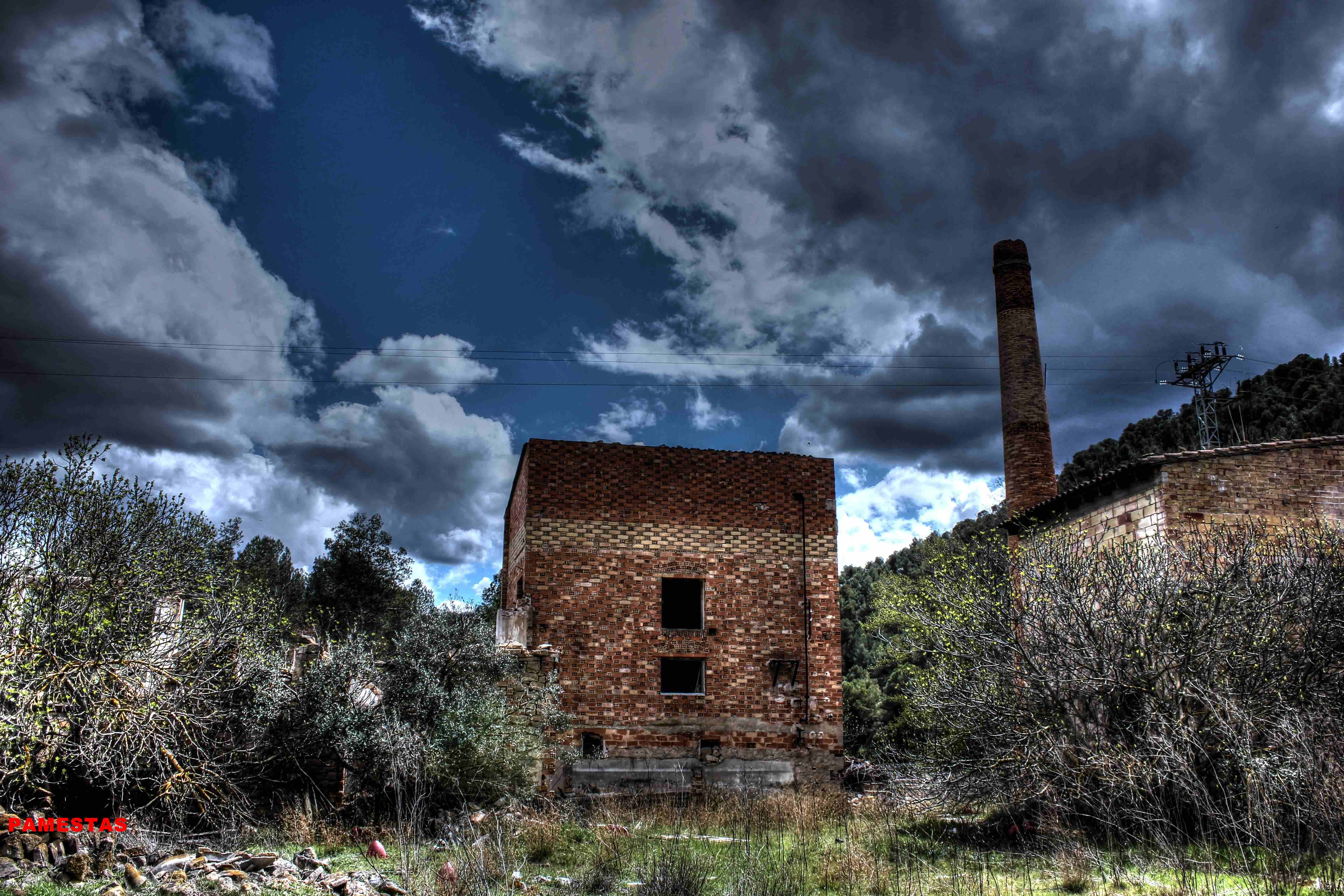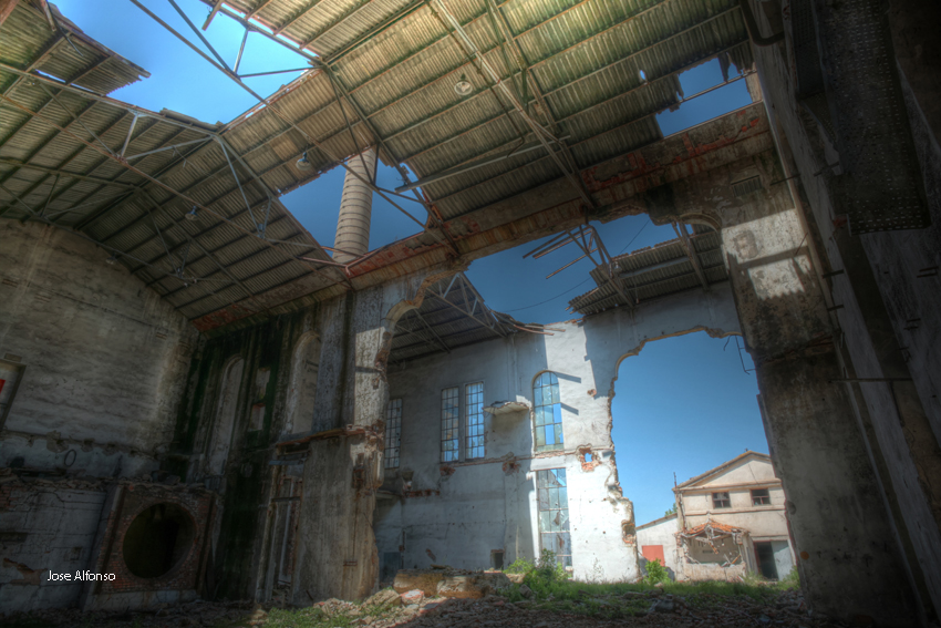 Este no es el caso. Esta fabrica “o lo que fue en su dia” esta tan destruida que llega a ser bastante pictórica. A demás el día del reportaje el cielo cargado de nubes ayudo bastante.
