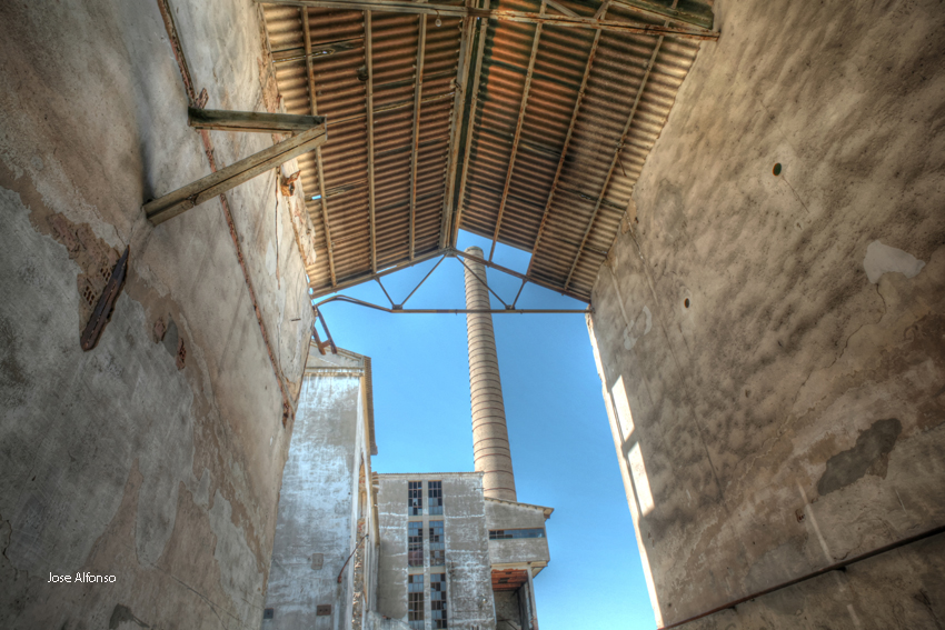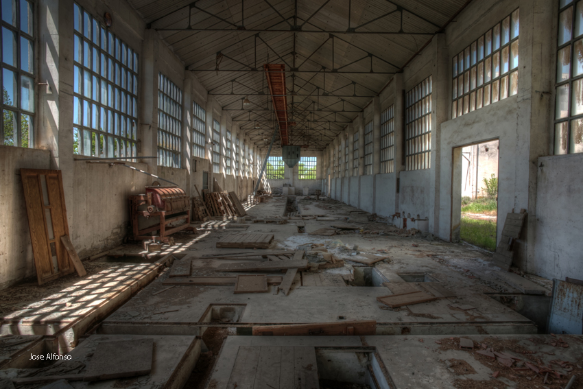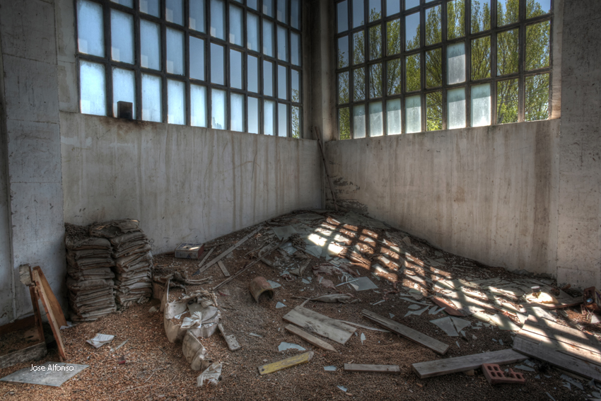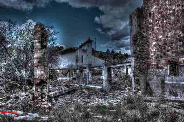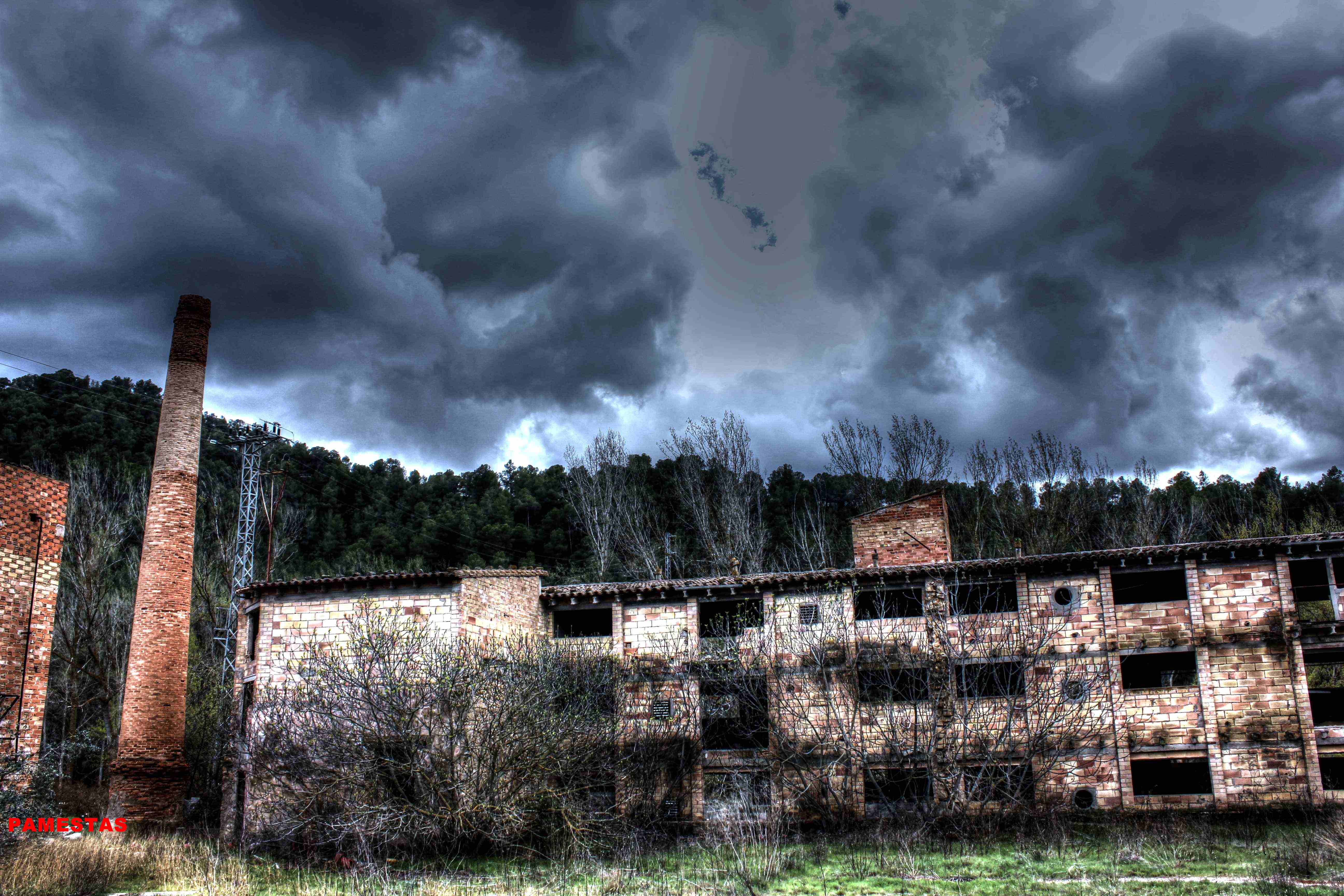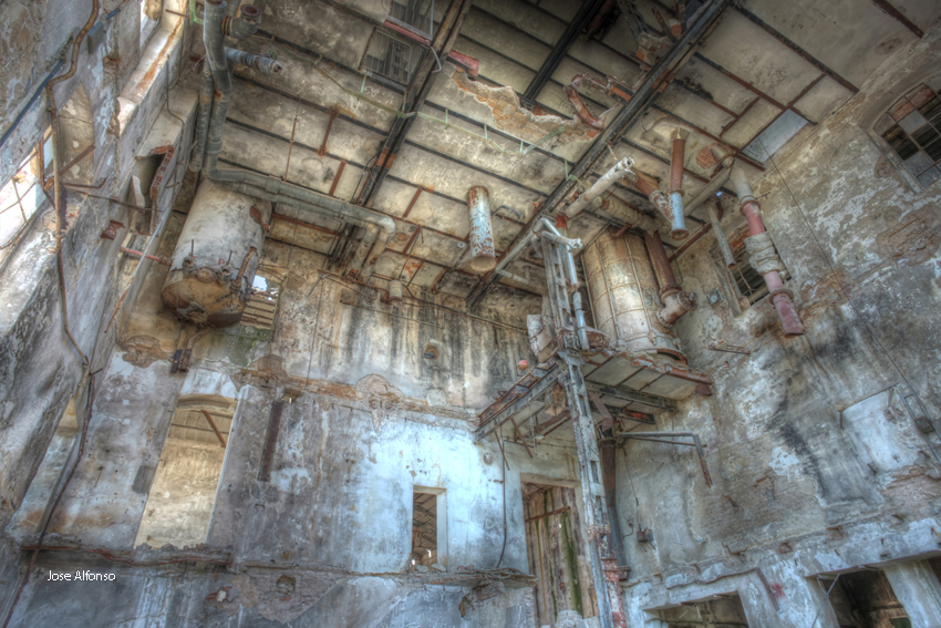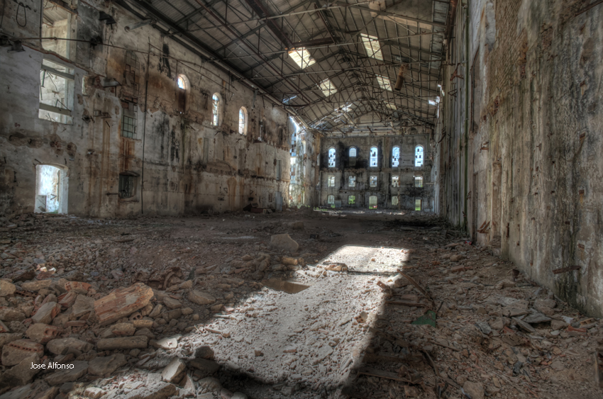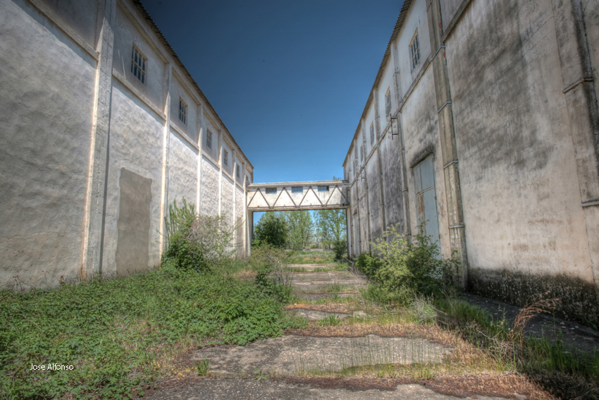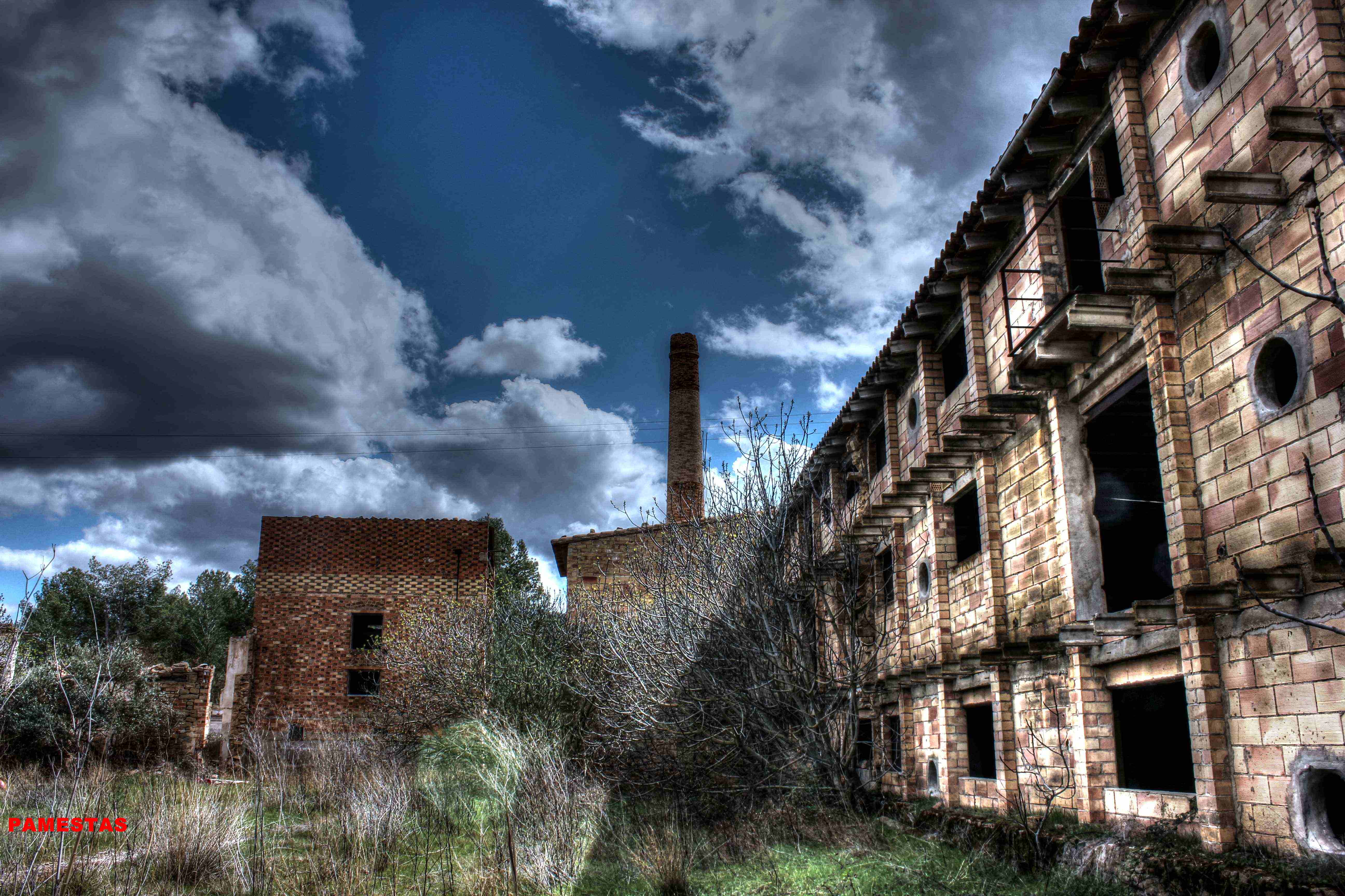 Este no es el caso. Esta fabrica “o lo que fue en su dia” esta tan destruida que llega a ser bastante pictórica. A demás el día del reportaje el cielo cargado de nubes ayudo bastante.
