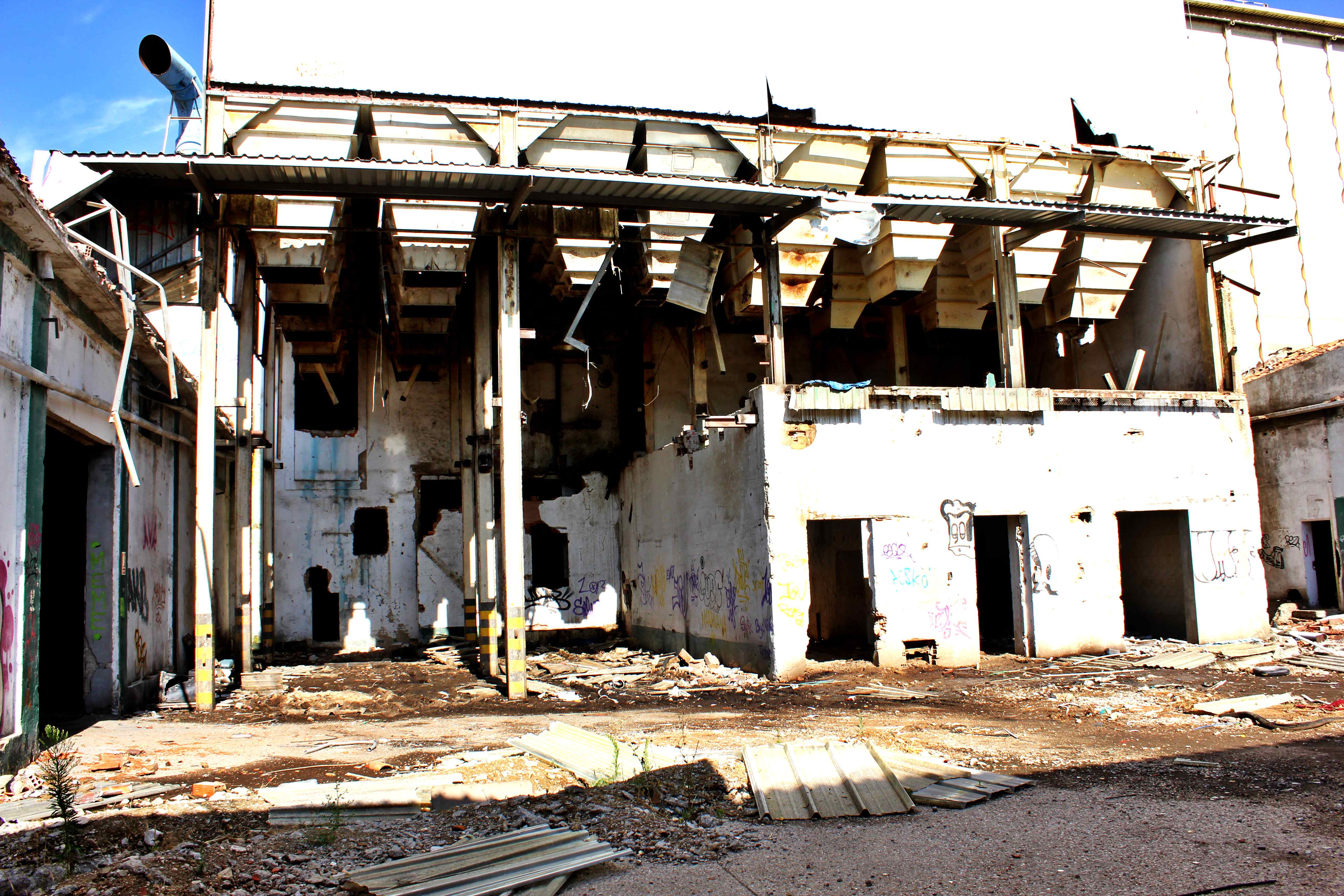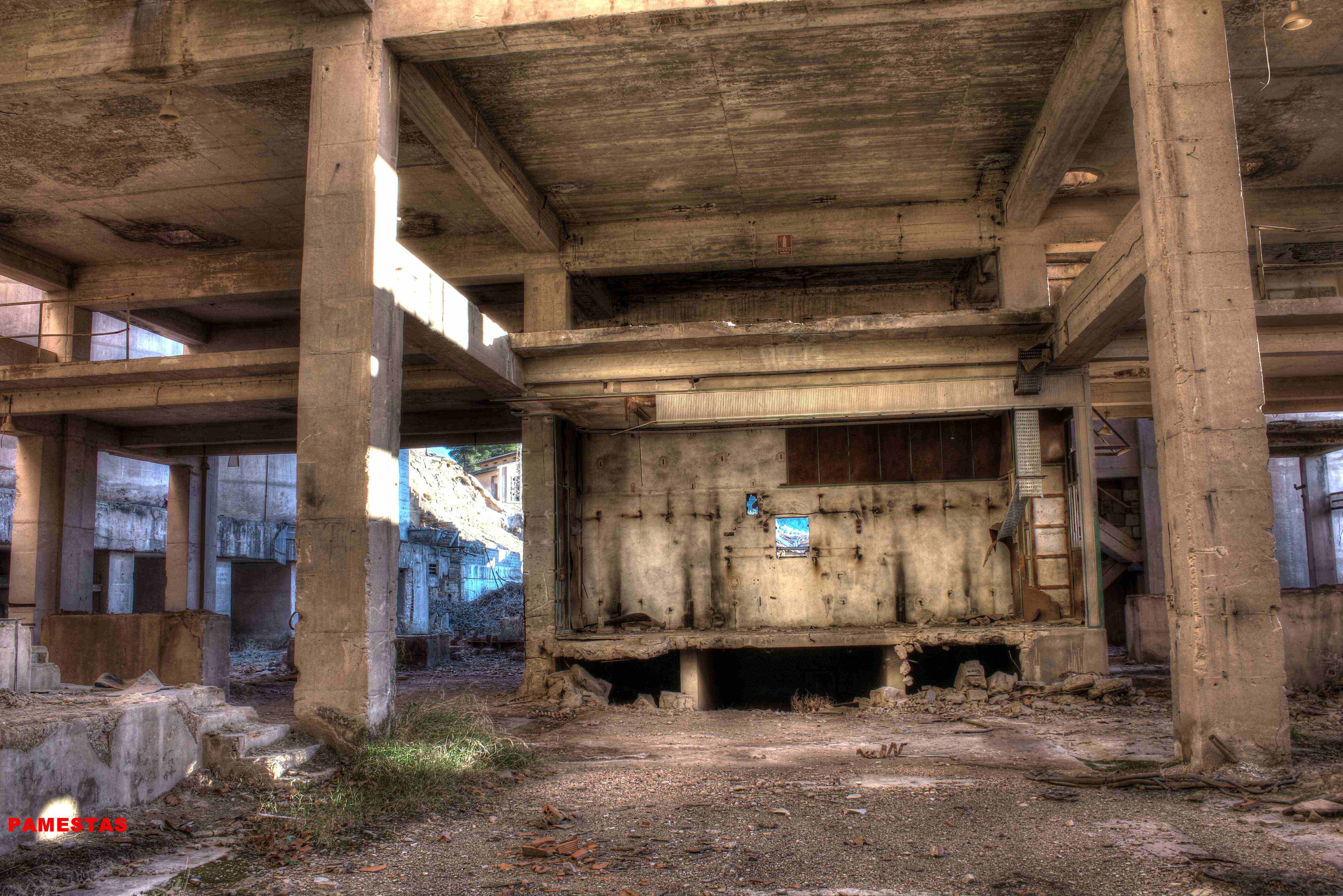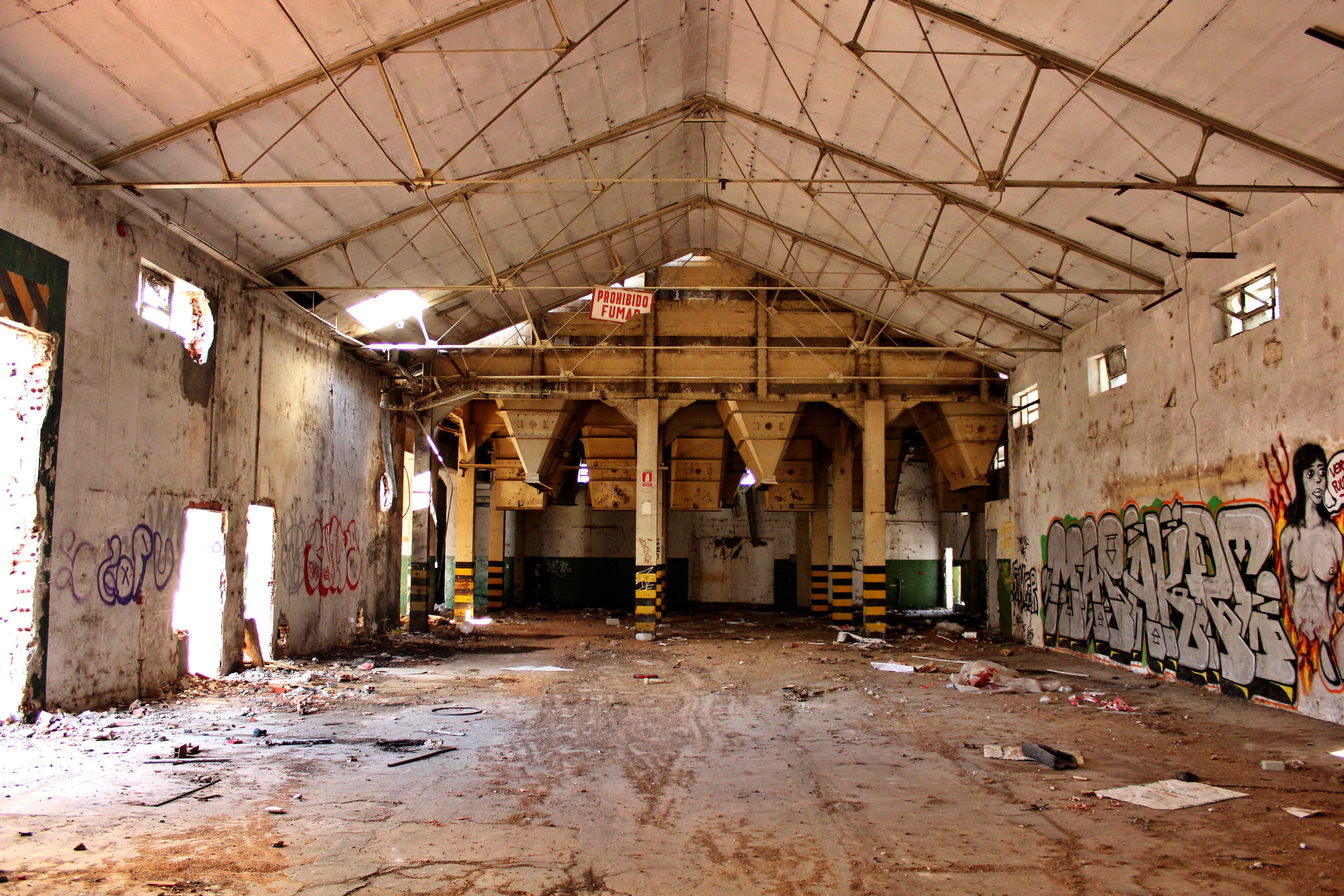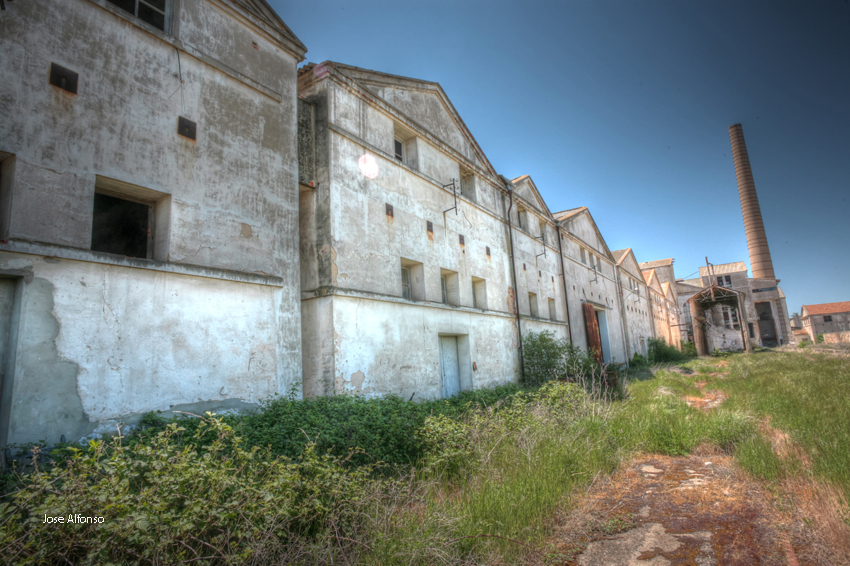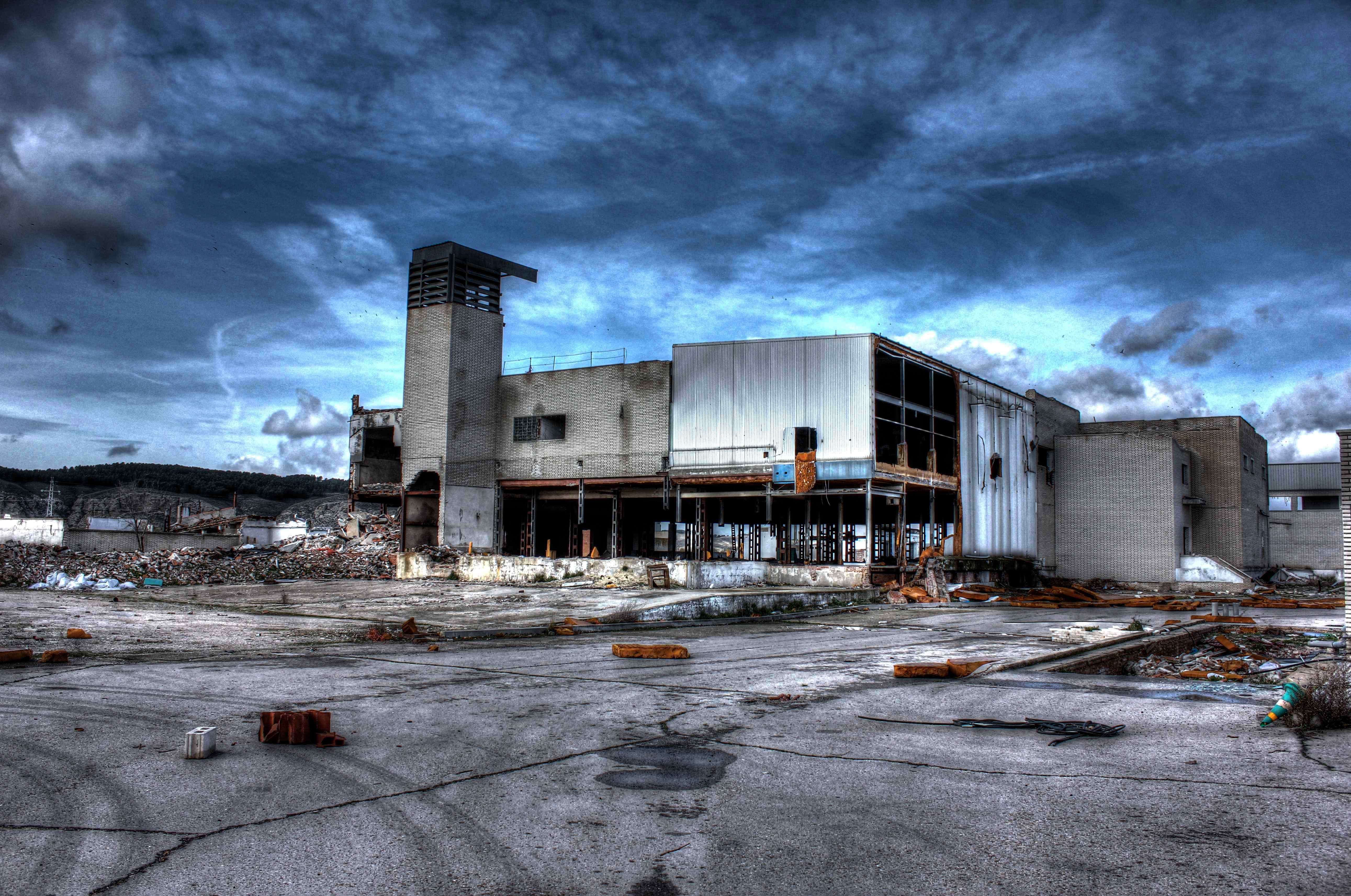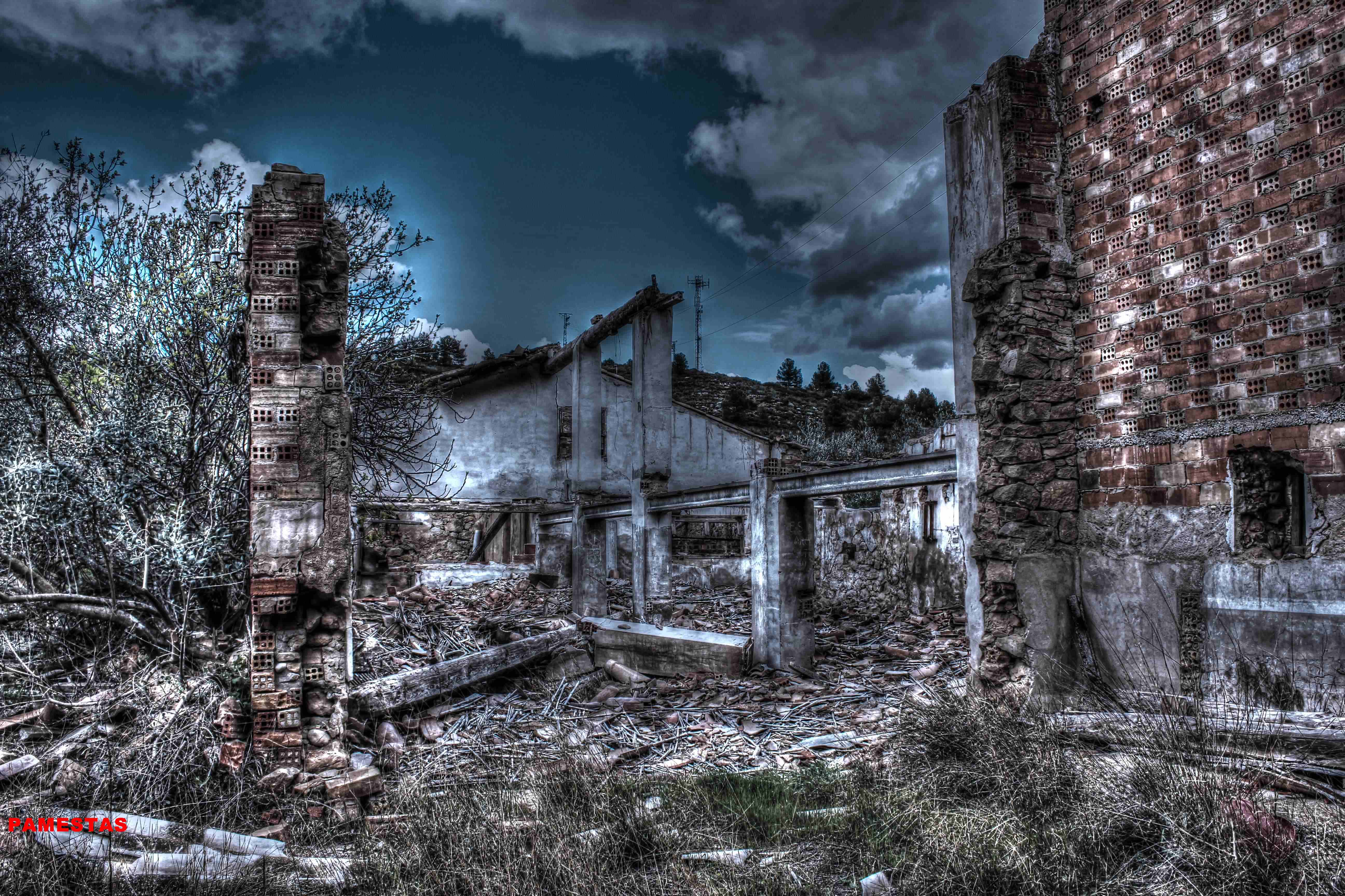 Este no es el caso. Esta fabrica “o lo que fue en su dia” esta tan destruida que llega a ser bastante pictórica. A demás el día del reportaje el cielo cargado de nubes ayudo bastante.