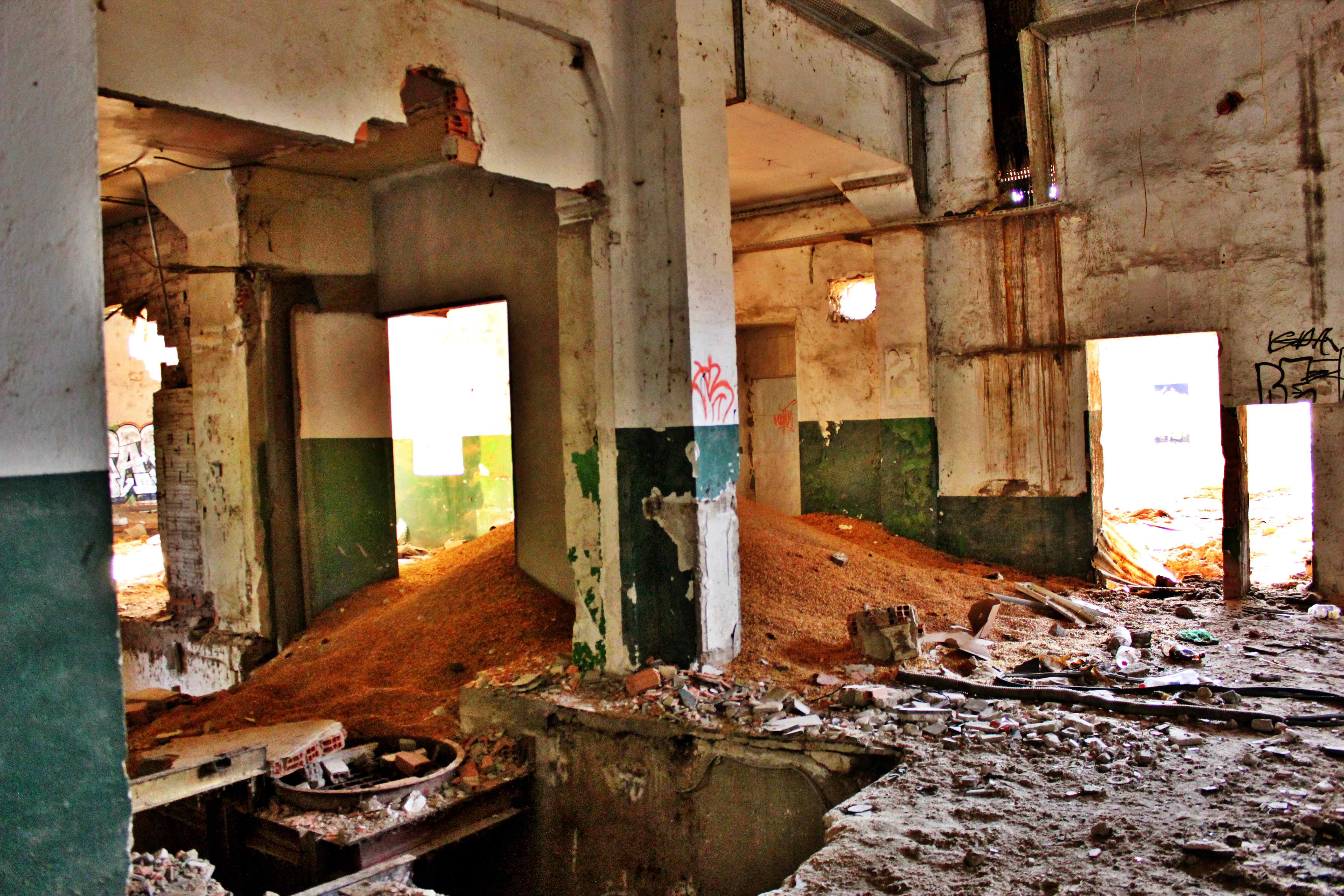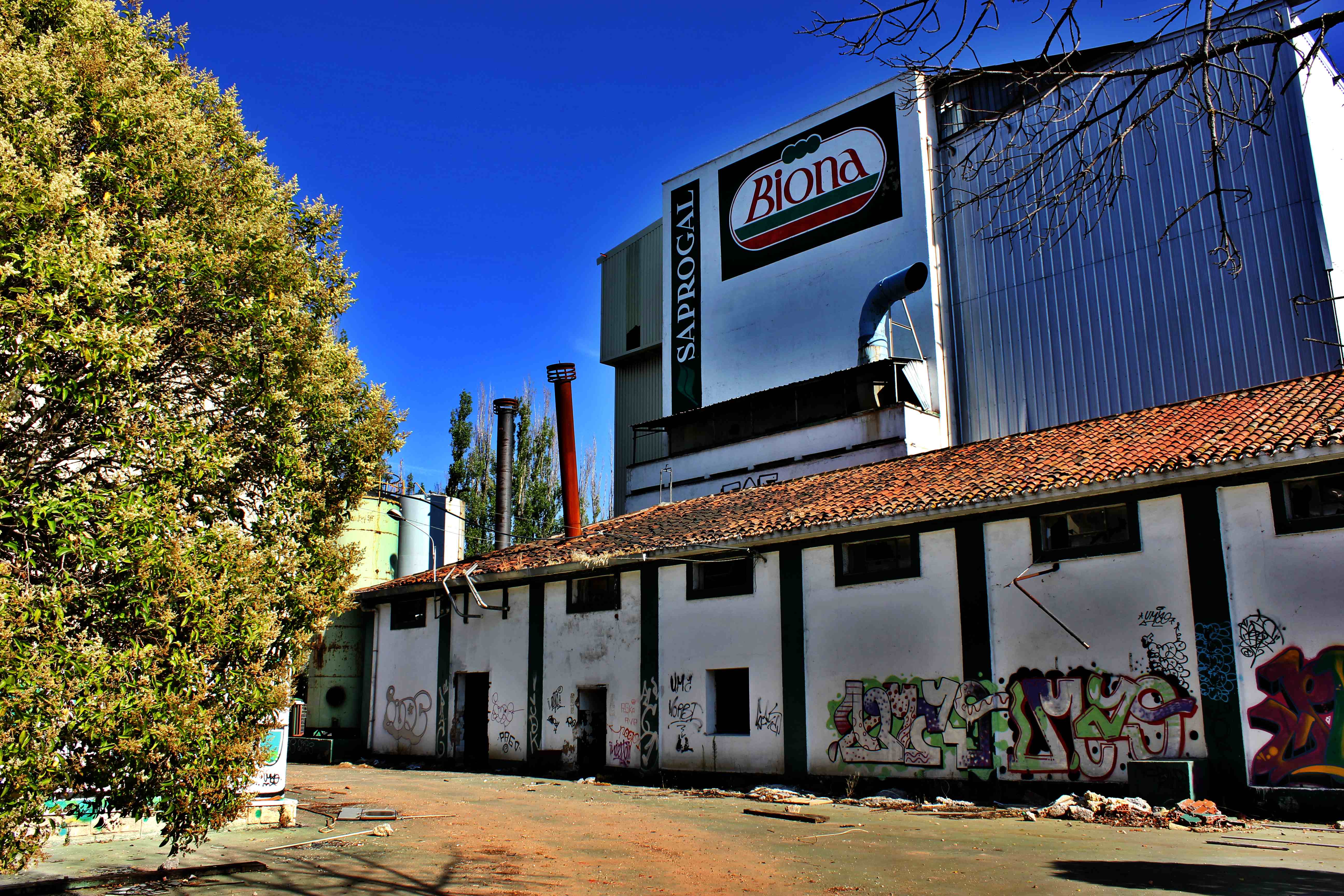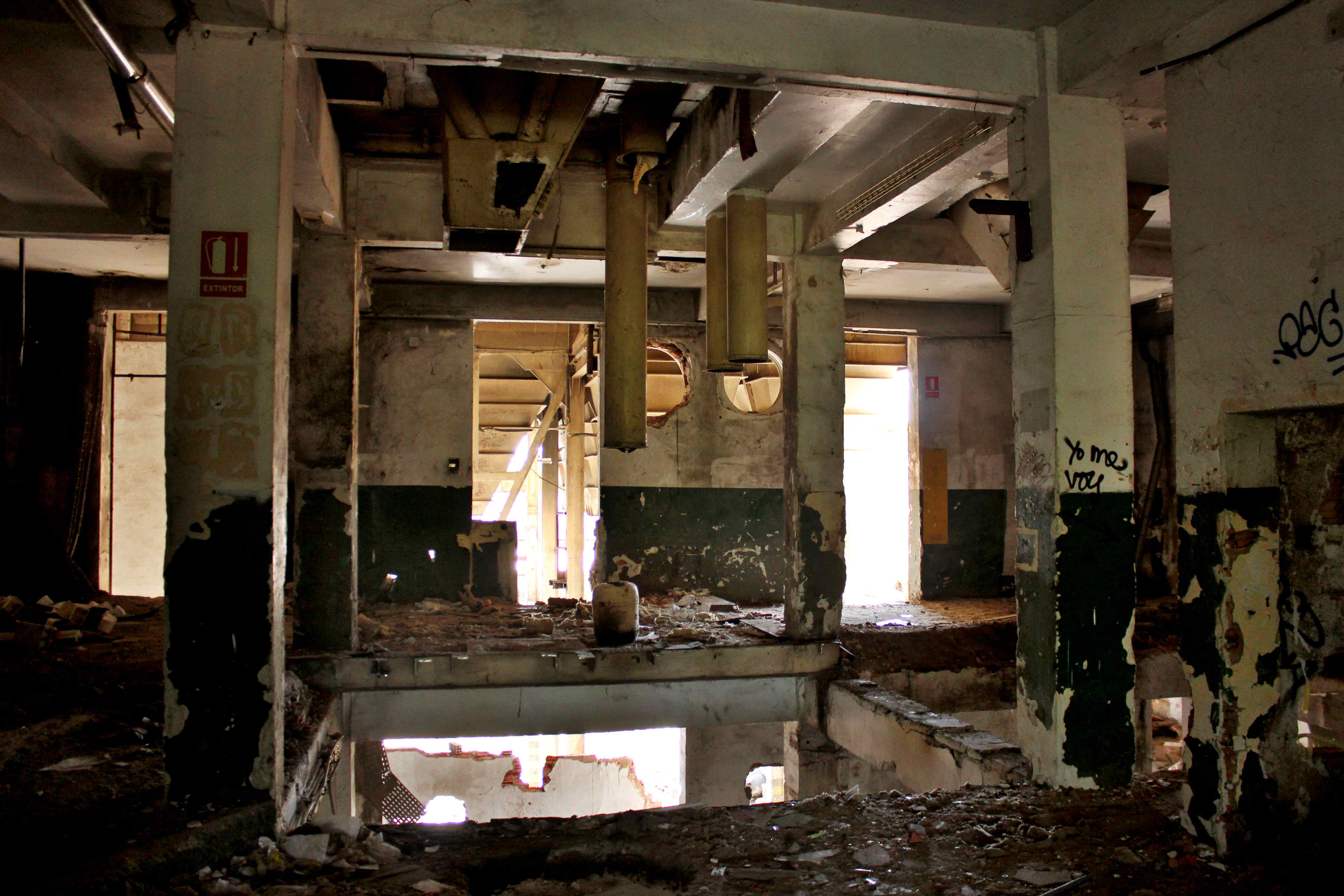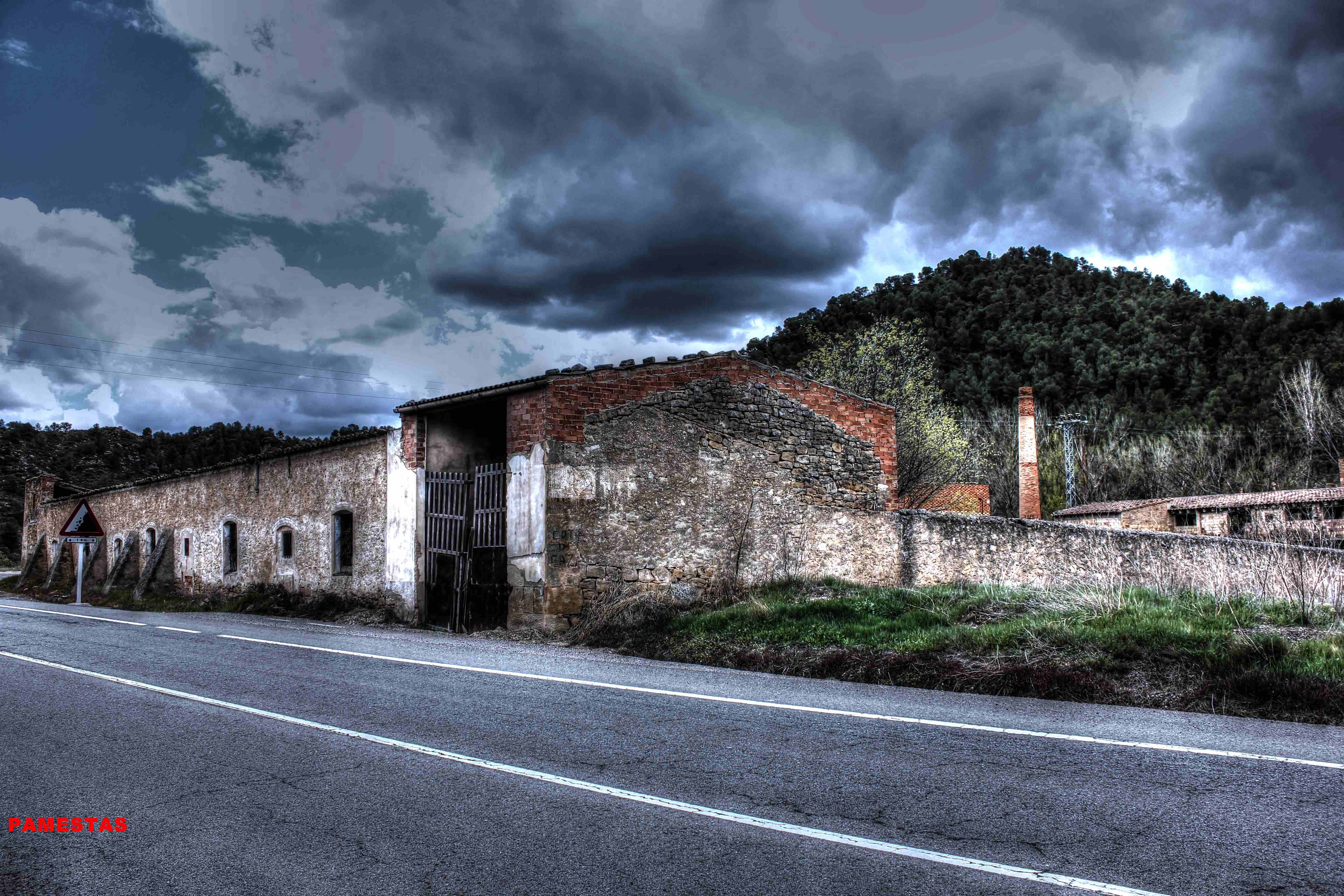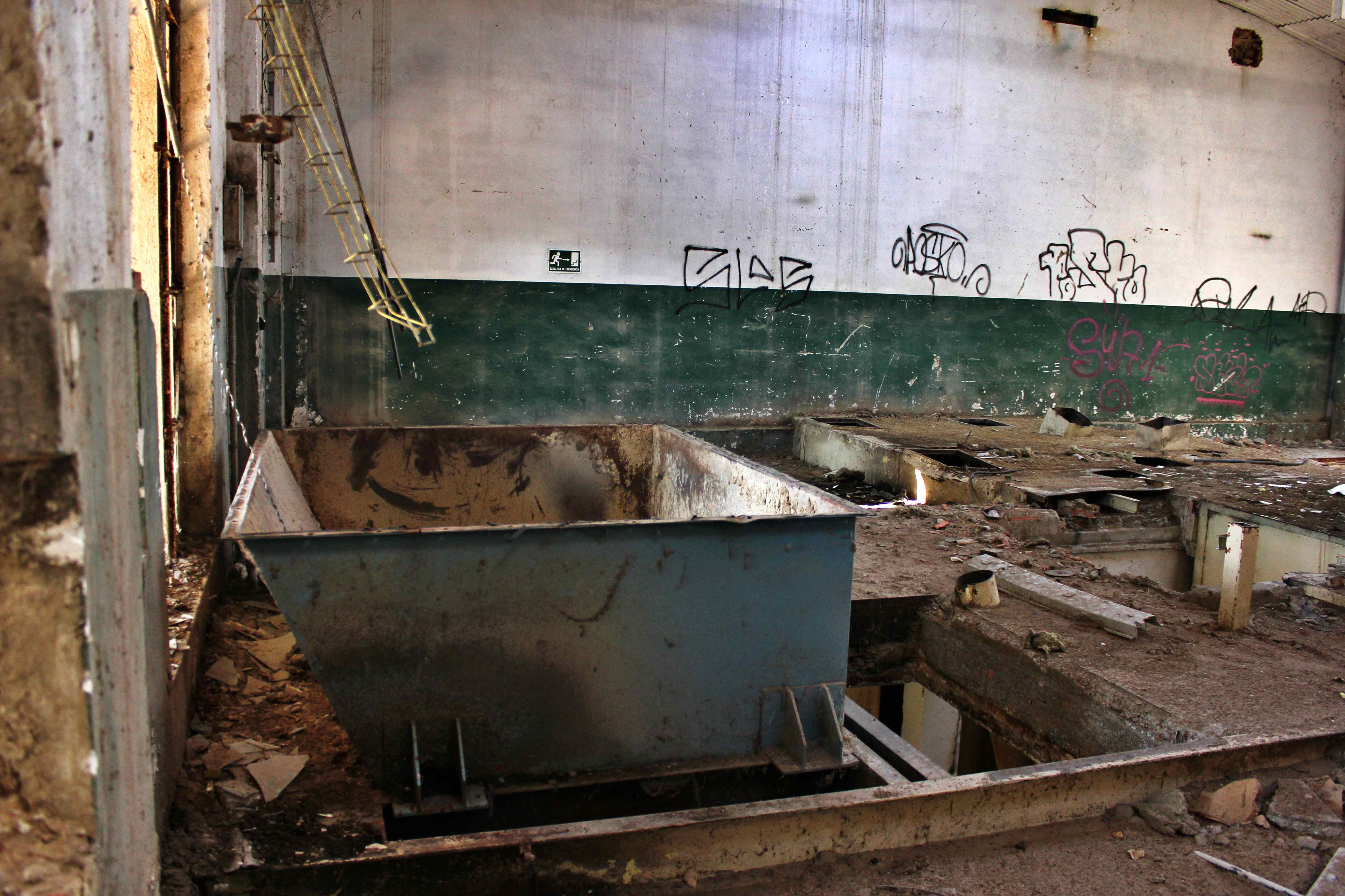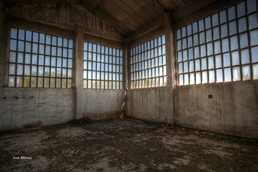 Este no es el caso. Esta fabrica “o lo que fue en su dia” esta tan destruida que llega a ser bastante pictórica. A demás el día del reportaje el cielo cargado de nubes ayudo bastante.