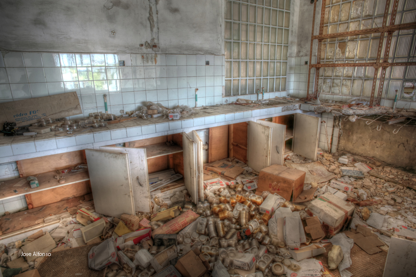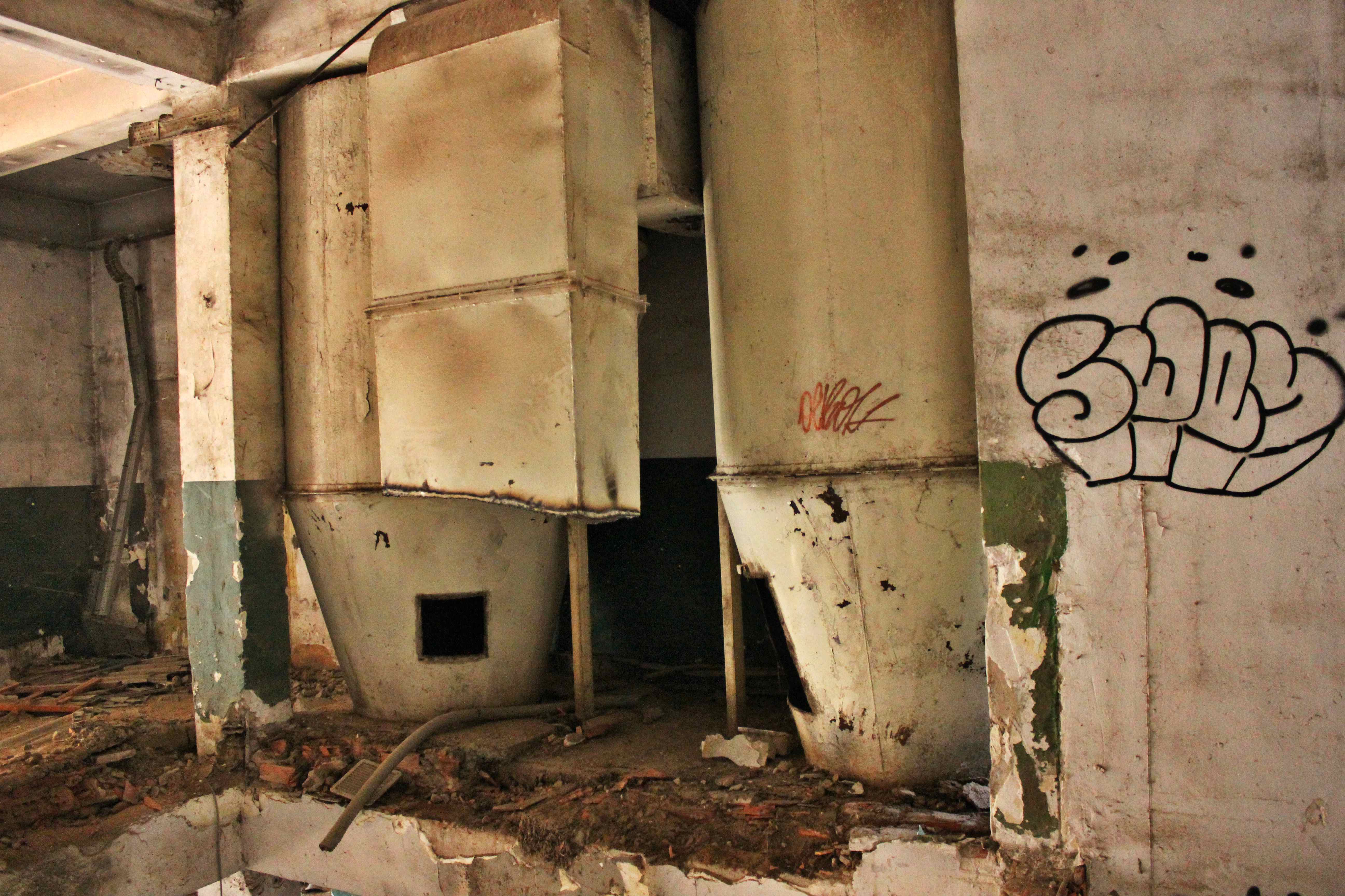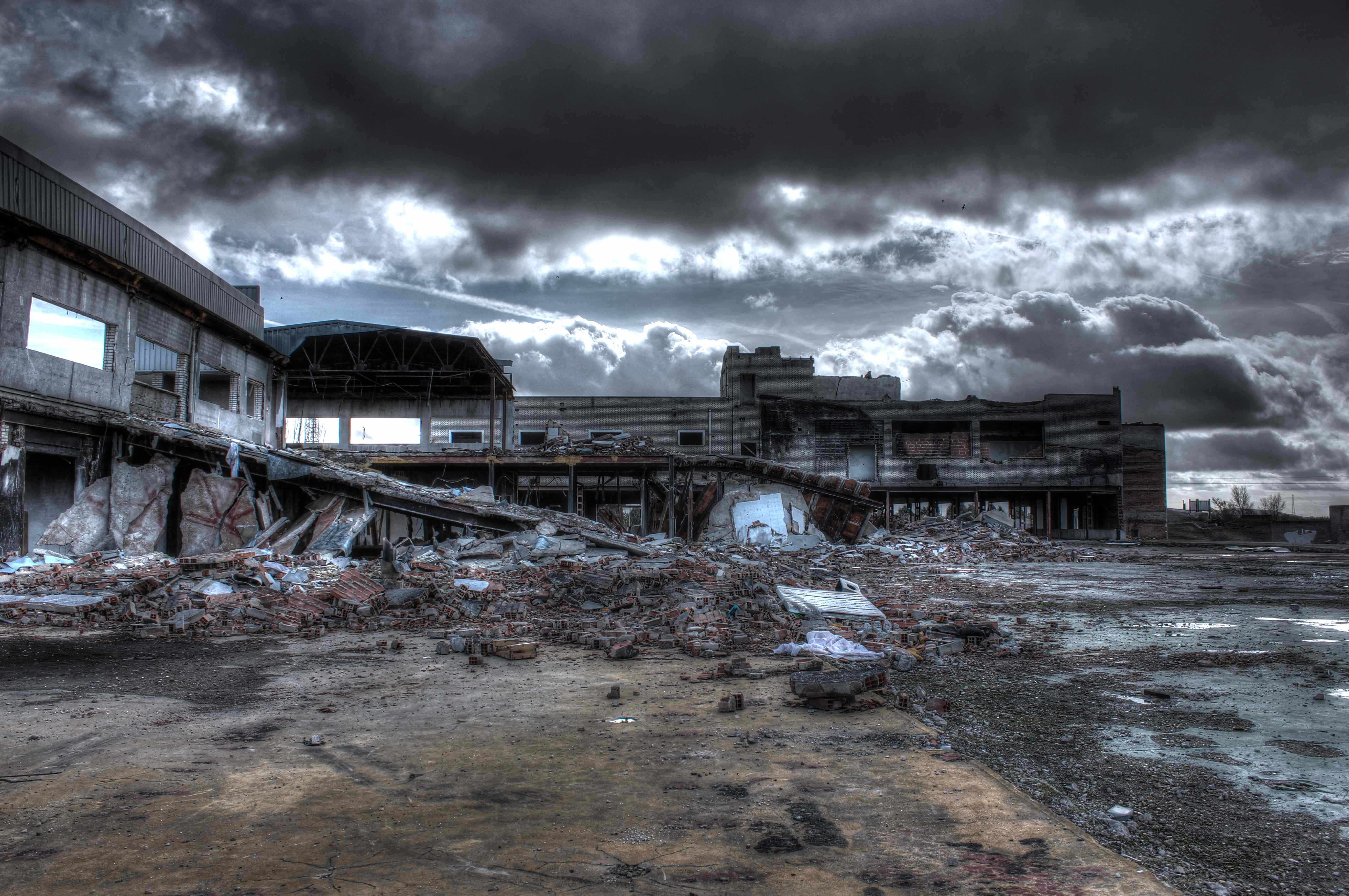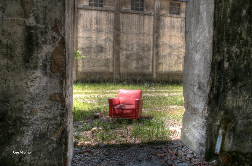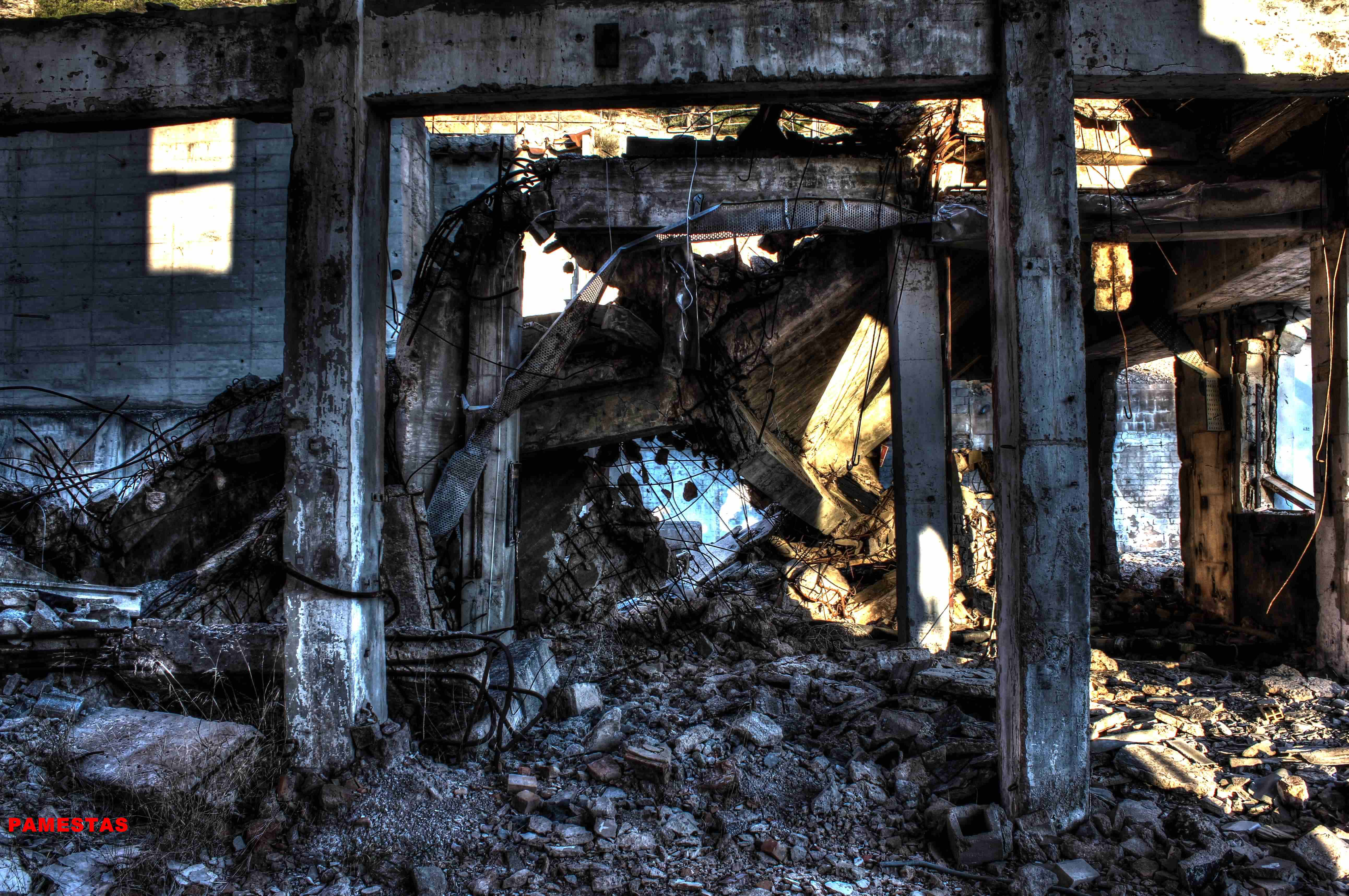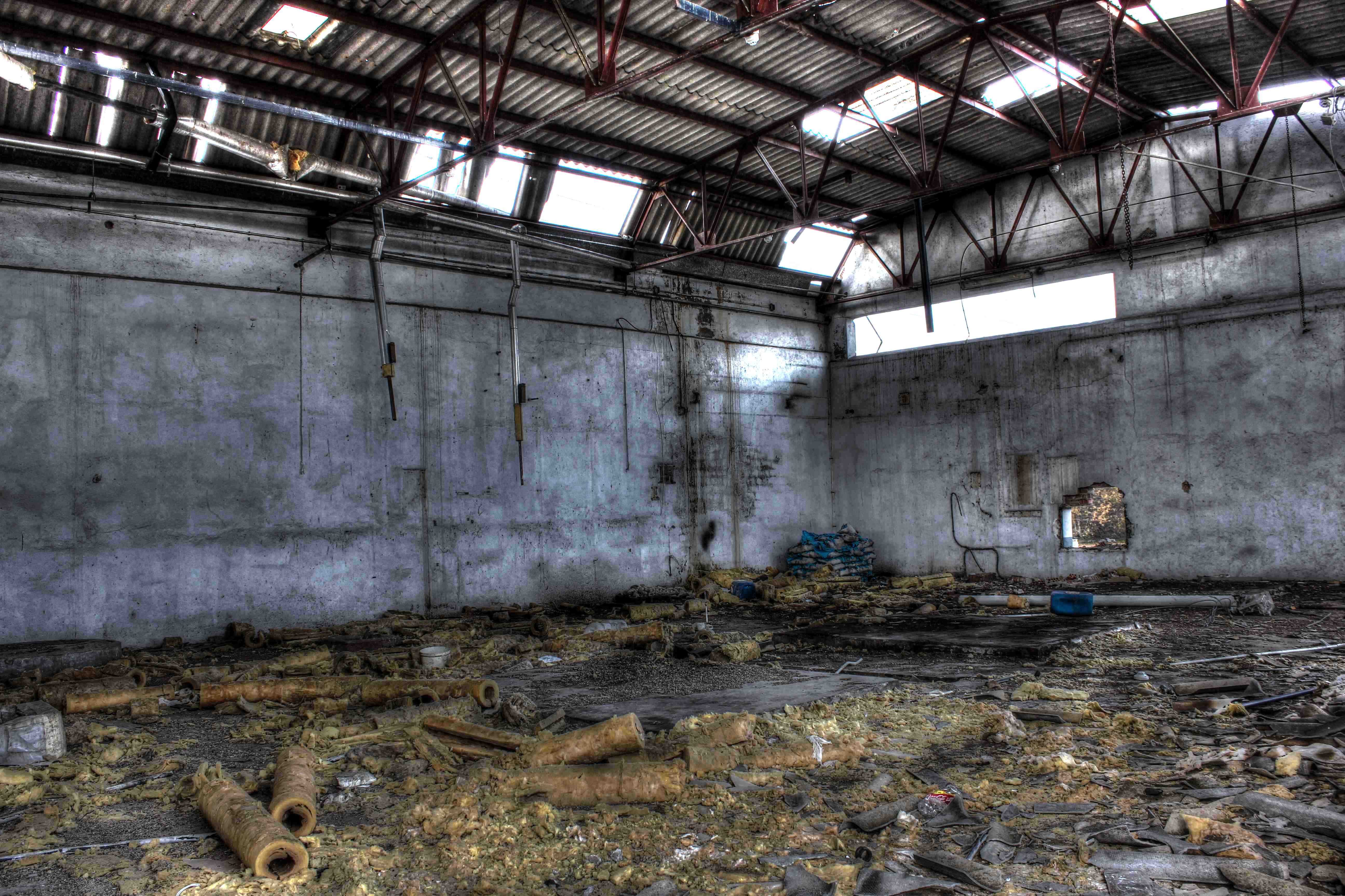 Este no es el caso. Esta fabrica “o lo que fue en su dia” esta tan destruida que llega a ser bastante pictórica. A demás el día del reportaje el cielo cargado de nubes ayudo bastante.