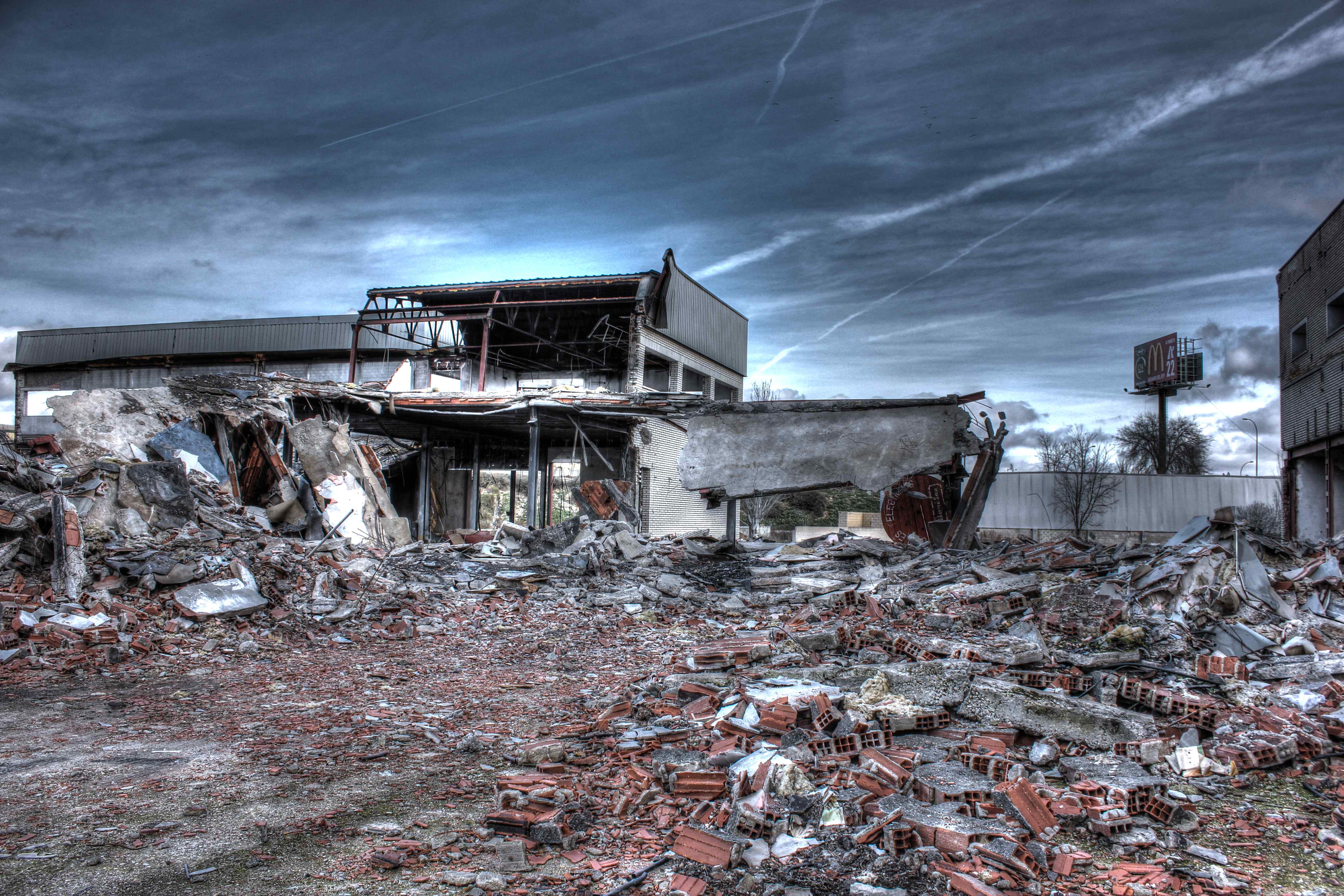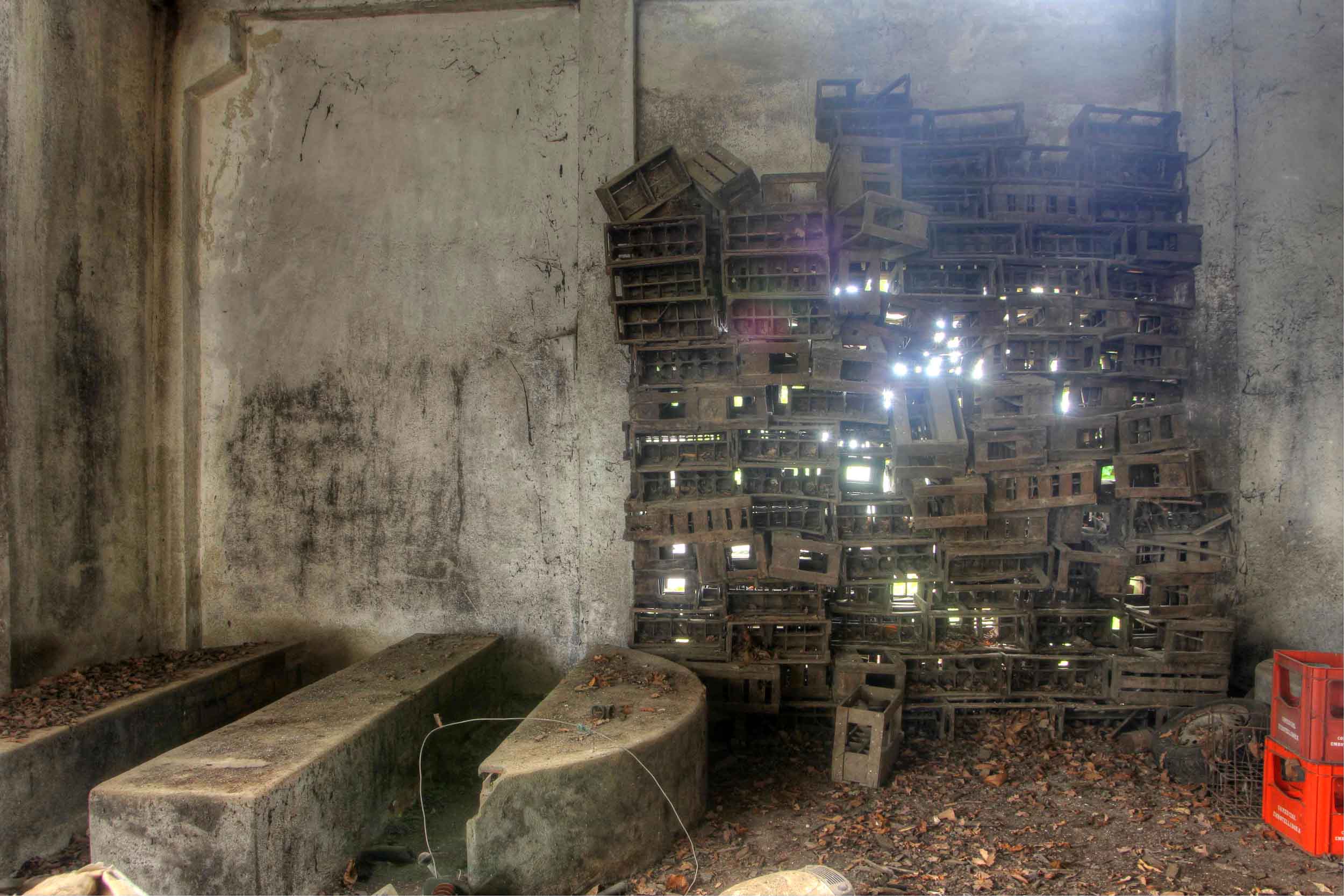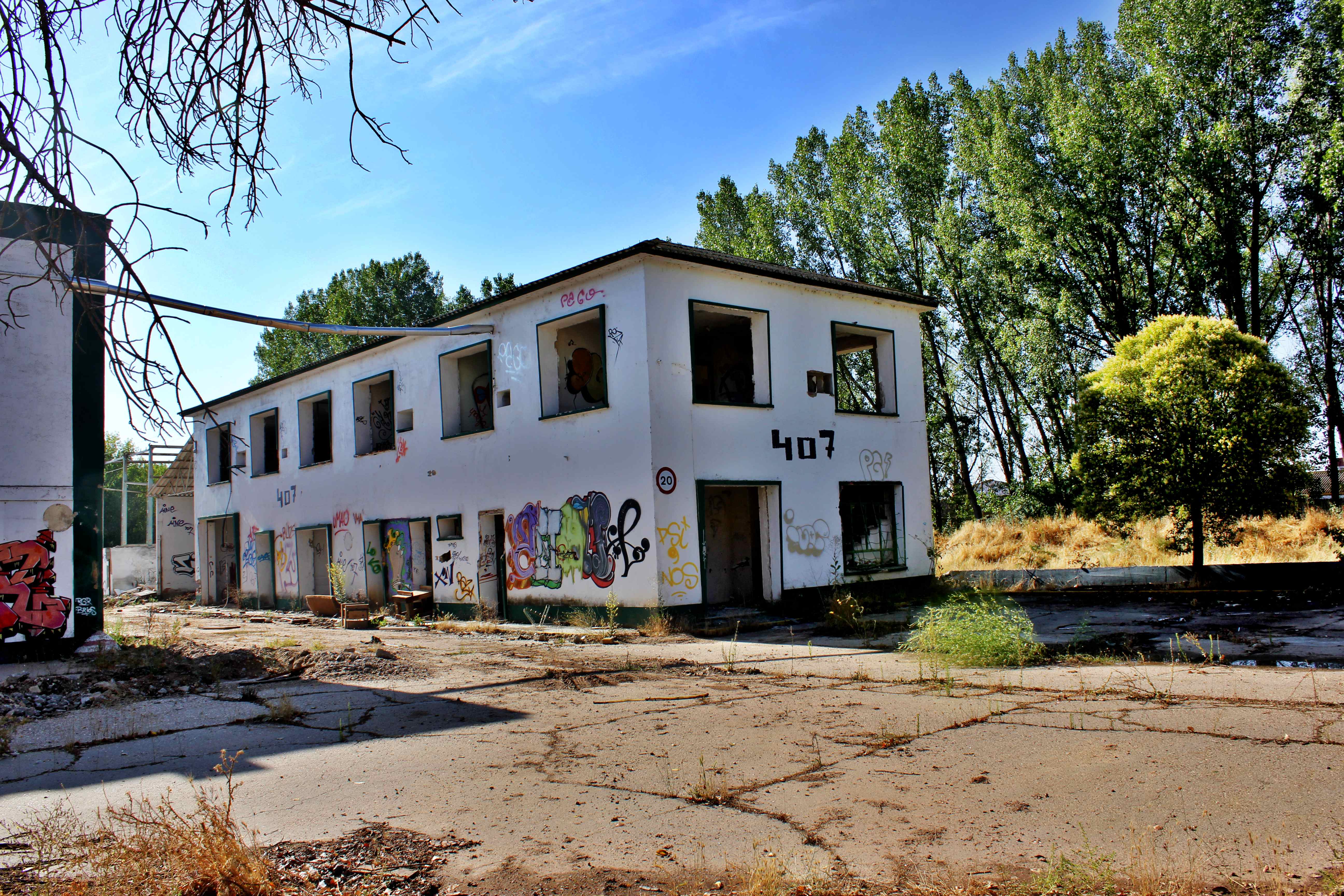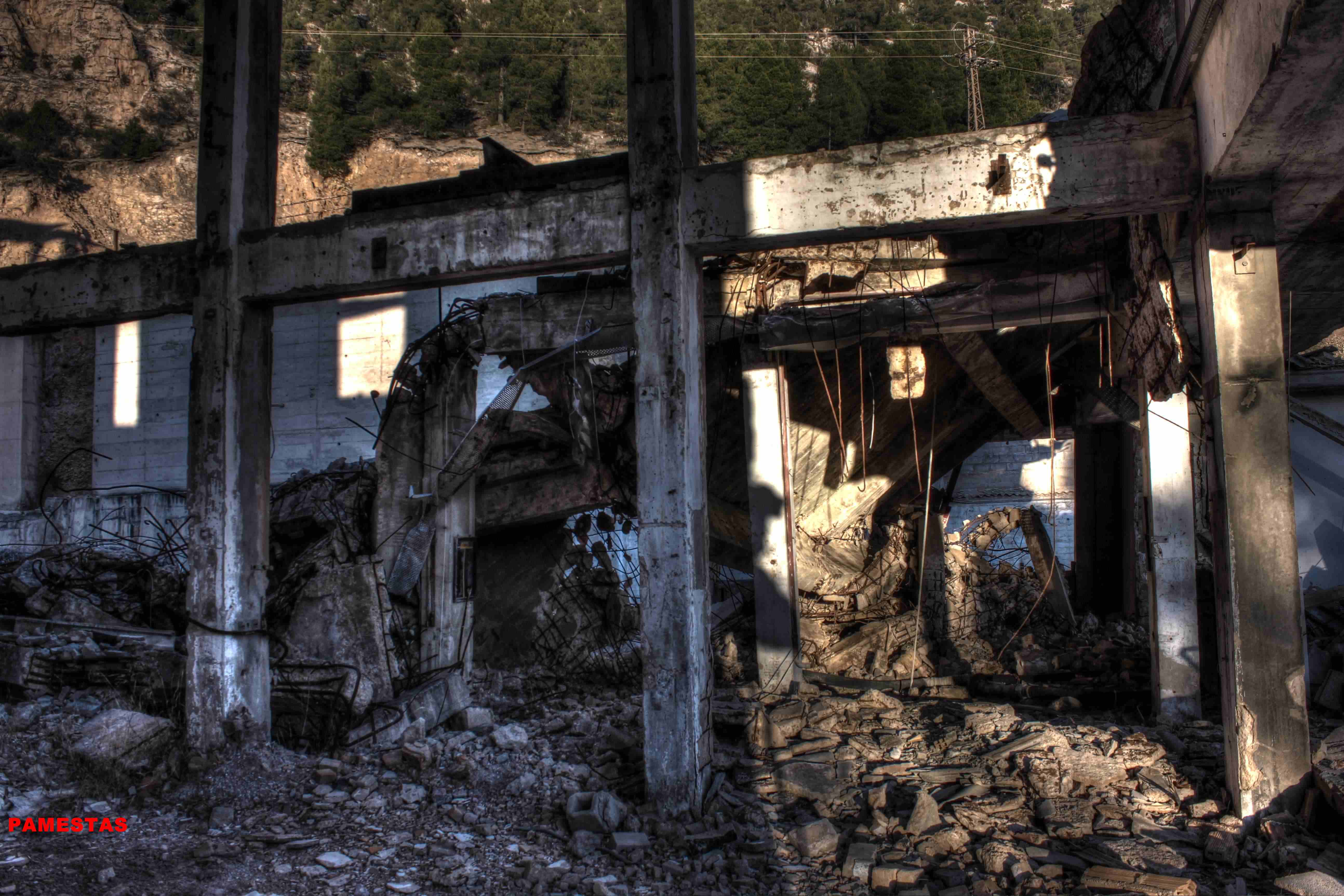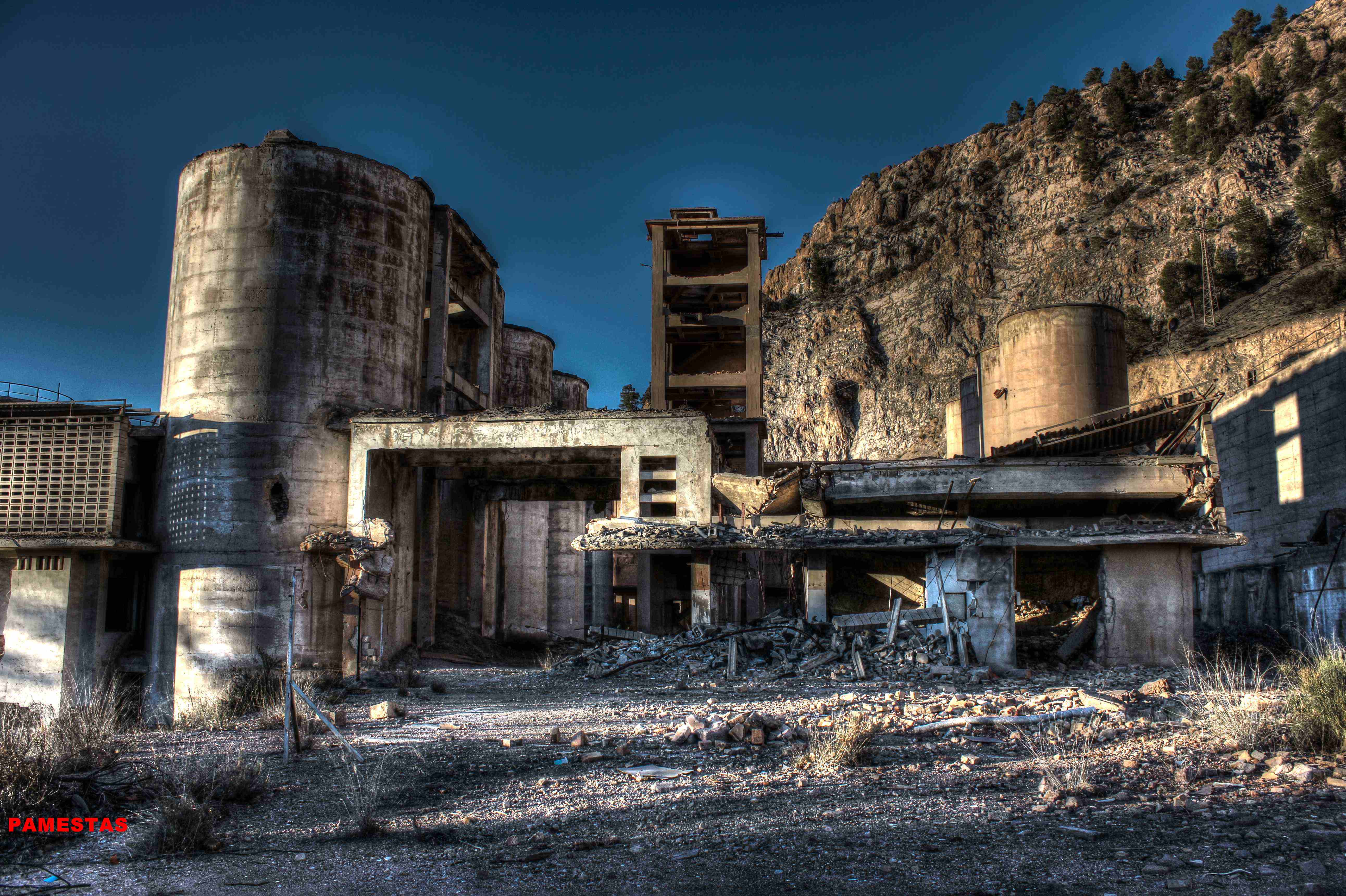 Este no es el caso. Esta fabrica “o lo que fue en su dia” esta tan destruida que llega a ser bastante pictórica. A demás el día del reportaje el cielo cargado de nubes ayudo bastante.