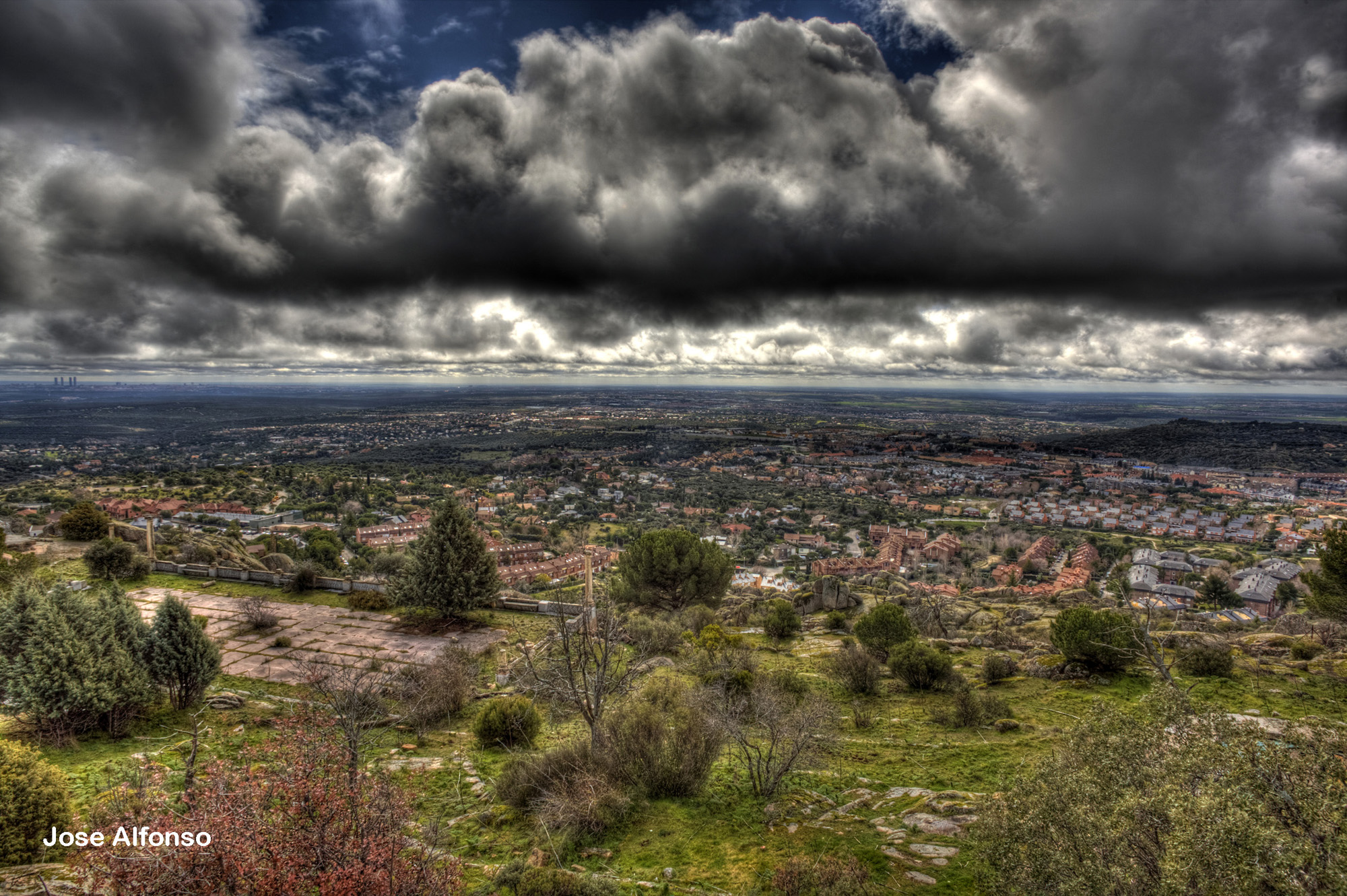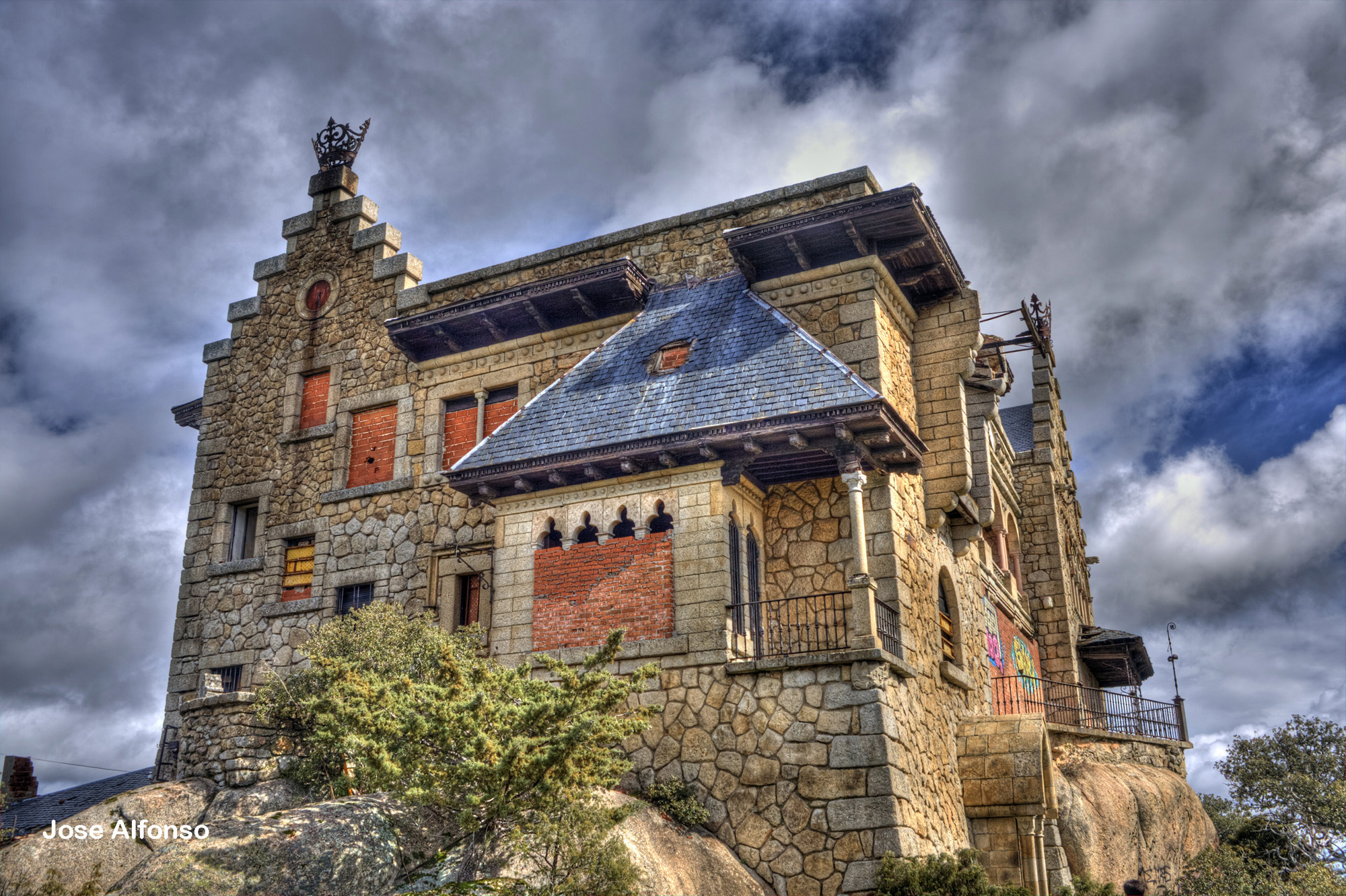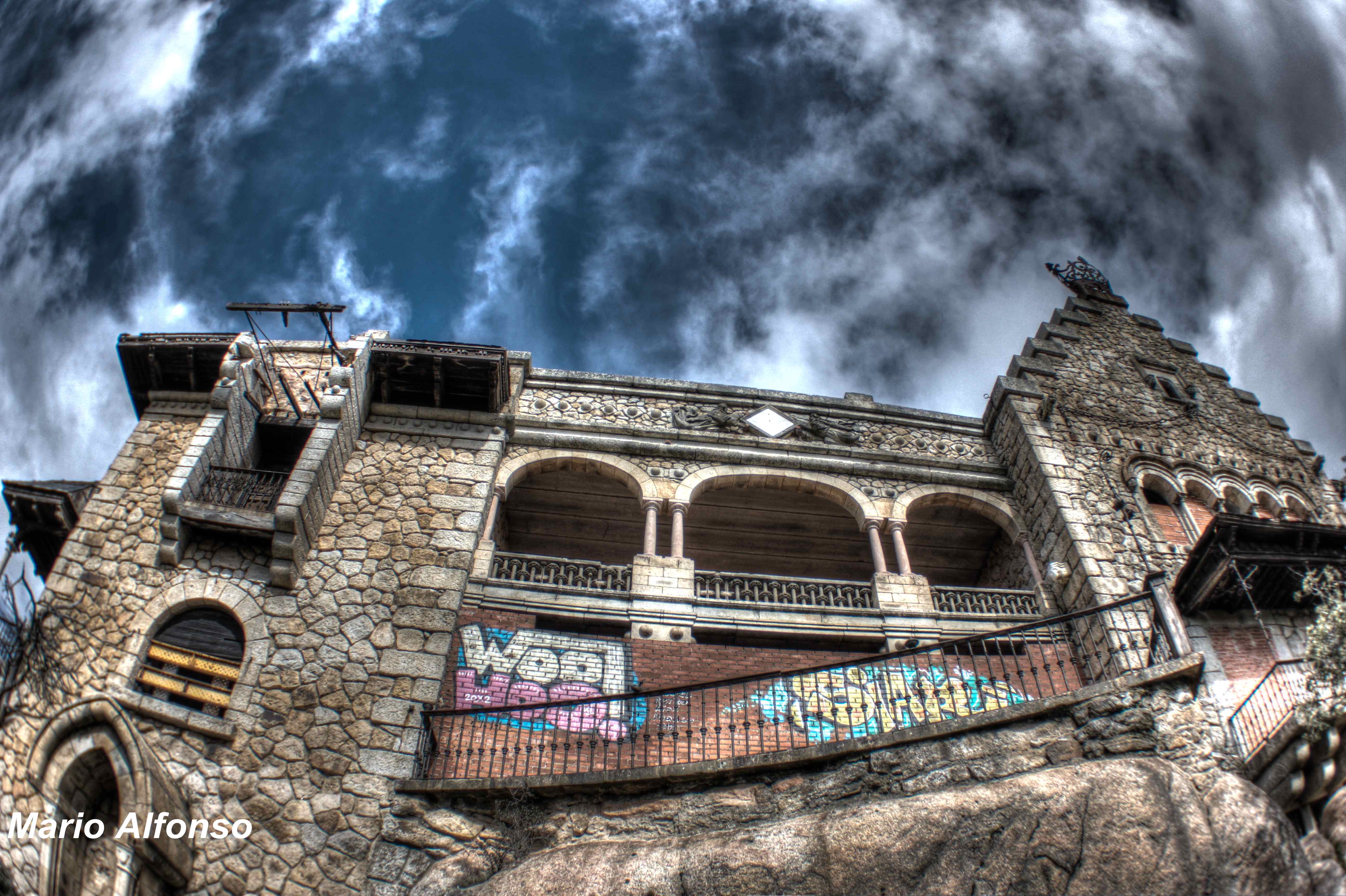 Si circulas por la A-6 dirección Coruña a mano derecha y a la altura de Torrelodones de ve en los alto de cerro. Es un precioso palacete completamente solitario y aislado.